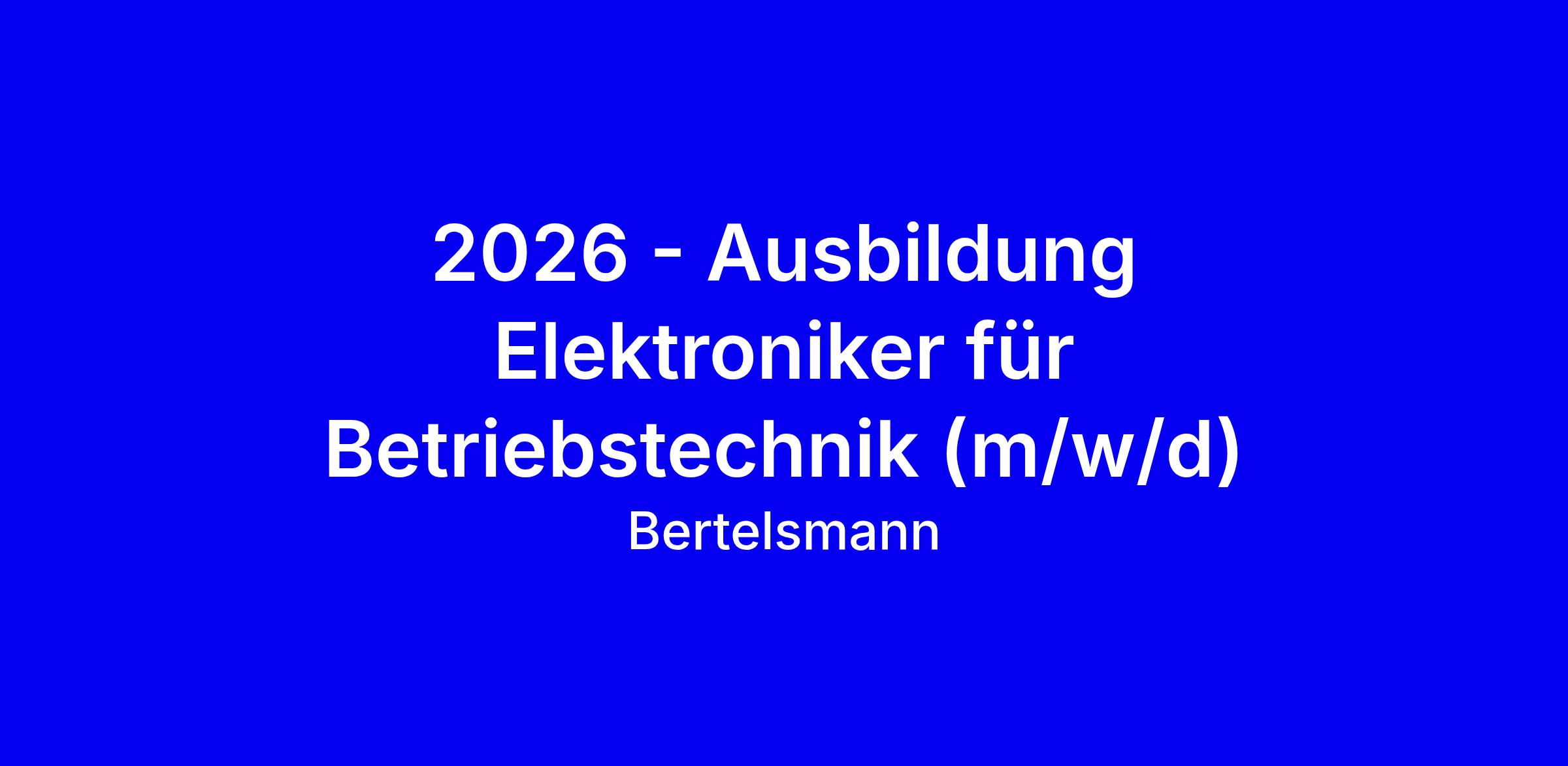 Bei Bertelsmann in Pößneck suchen wir Dich als Auszubildende/n zum Elektroniker für Betriebstechnik (m/w/d) für 2026. Die 3,5-jährige Ausbildung fokussiert Energie, Antrieb und Gebäudetechnik. Zu den Aufgaben gehören Prüfung und Wartung elektrischer Anlagen, Installation von Bauteilen, Anfertigen von Schaltplänen und Berichten, Fehlersuche sowie die Beachtung sicherheits- und technischen Regeln. Du solltest gern im Team arbeiten, Technikbegeisterung mitbringen, konzentriert und verantwortungsbewusst handeln, Mathe und Physik stärken, auch unter Zeitdruck präzise arbeiten. Im Gegenzug gibt es faire Bezahlung, abwechslungsreiche Aufgaben, 30 Urlaubstage, Azubi-Events, vermögenswirksame Leistungen, Kantine und Gesundheitsangebote. Wichtig: Bewerbe dich mit Anschreiben, Lebenslauf und aktuellem Schulzeugnis und zeige, warum du ins Team passt; Vielfalt wird geschätzt. Nutze jetzt den Button jetzt bewerben.