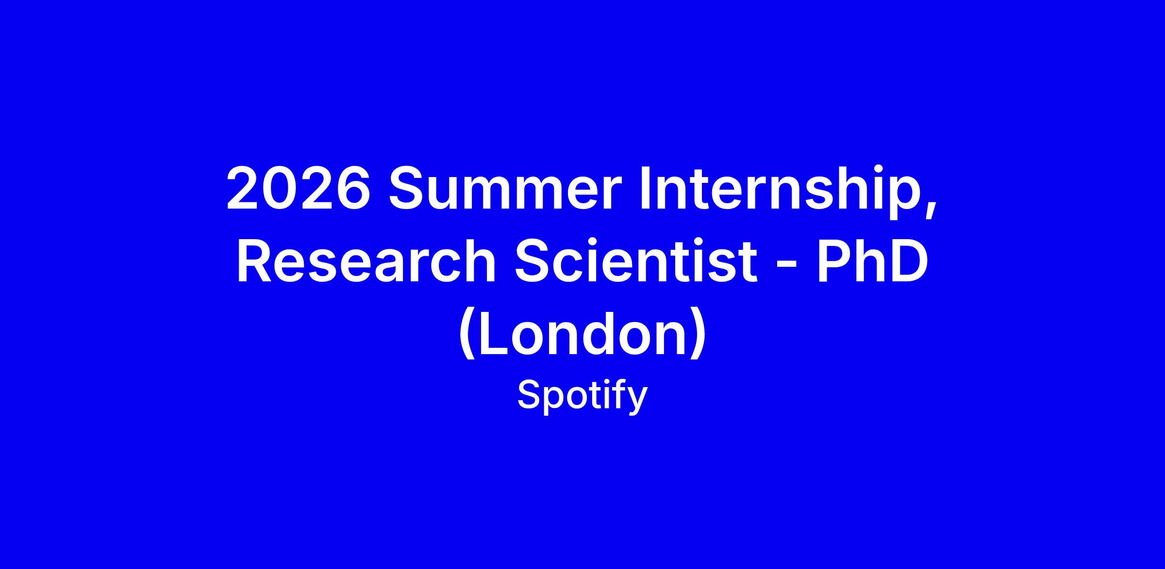 Spotify’s 2026 Summer Internship for Research Scientist in London seeks PhD candidates or recent graduates with applied ML, NLP, audio/video analysis, or related fields. The 10 to 12 week program starts mid June and is onsite in London, where you’ll join an interdisciplinary team to push innovation, apply science to real problems, and potentially publish results. Ideal applicants are pursuing a PhD in CS, NLP, CV, applied math, or statistics, have work authorization for June to September 2026, and hold publications in ACL, NeurIPS, ICML, CVPR, or KDD. Tips: tailor your CV to show large-scale data work, graph reasoning, and LLM use; highlight music or media interest, provide links to work, and apply before February 5, 2026 5 PM GMT.