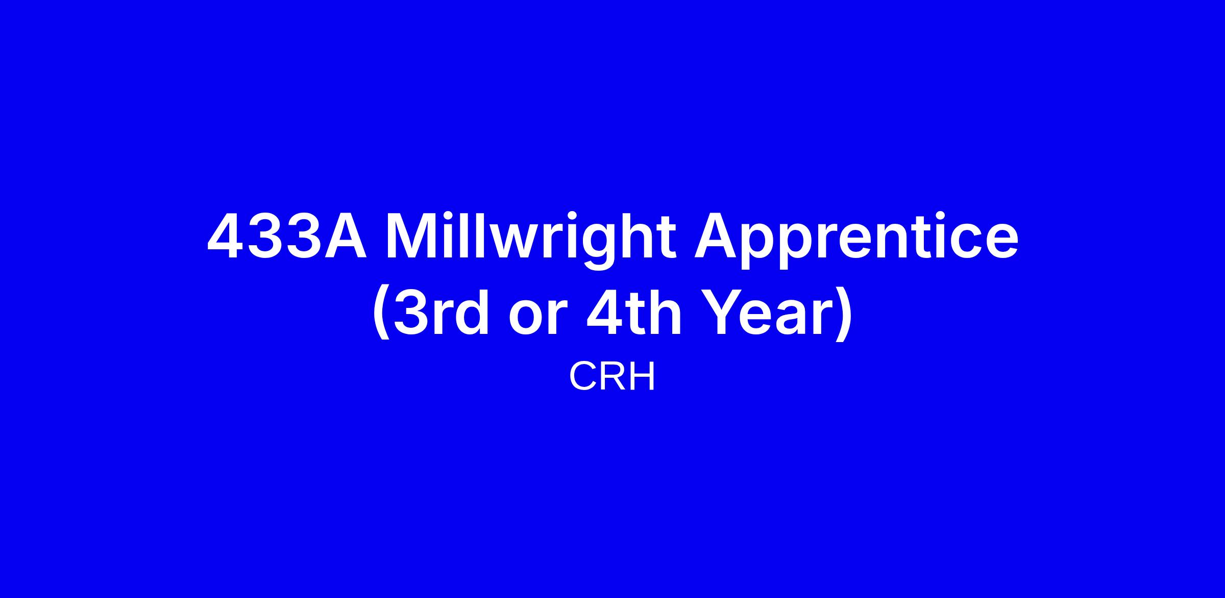 Position Title: 433A Millwright Apprentice (3rd or 4th Year)
