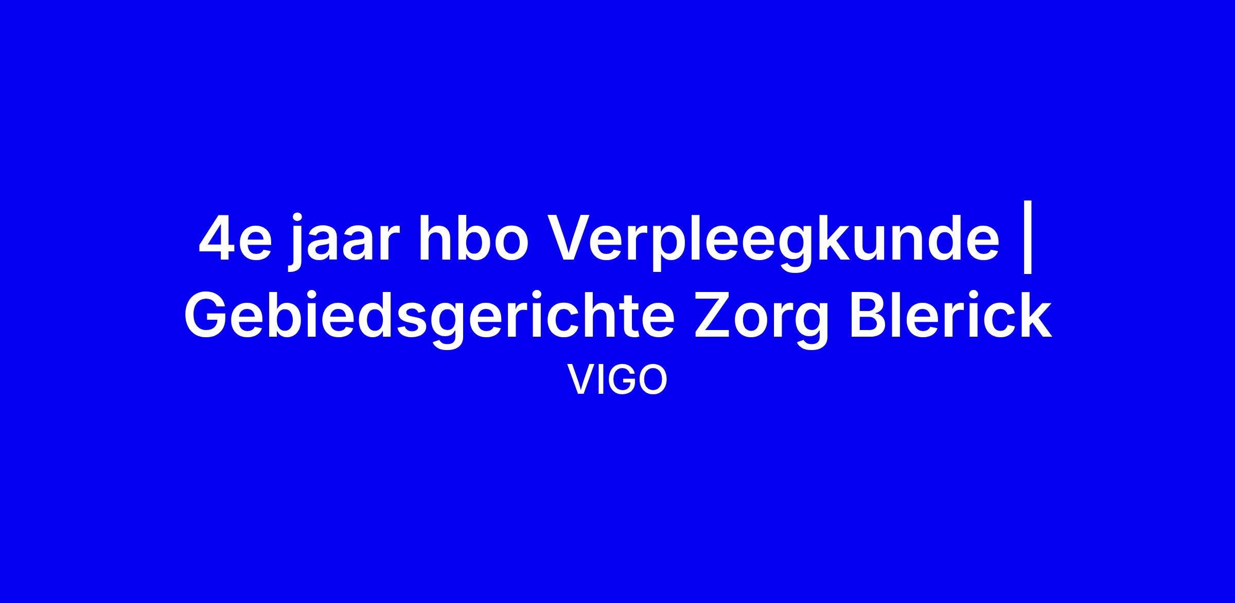 Deze fulltime stageplek bij Vincent van Gogh voor GGZ in het Gebiedsteam Blerick zoekt een 4e jaars HBO Verpleegkunde student die ervaring wil opdoen in ambulante ggz en herstelgerichte zorg. Je werkt in de wijk nabij de cliënt en sluit aan bij een multidisciplinair team terwijl je verpleegkundige taken uitvoert in het herstelproces. Vereisten: 4e jaars HBO Verpleegkunde, leergierig, proactief, zelfstandig, goede communicatieve vaardigheden, kunnen omgaan met complexe zorgvragen, flexibel en teamgericht. Wij bieden begeleiding en een dynamische leeromgeving met ervaring in specialistische ggz. Interesse Stuur motivatie en cv via onderstaande button voor 29 maart 2026. Tips: pas je motivatie aan op herstelgerichte zorg en ambulante ggz, geef voorbeelden van teamwork en zelfstandig werken, benoem ervaring met complexe zorgvragen en dynamische situaties, benadruk flexibiliteit en enthousiasme voor wijkwerk.