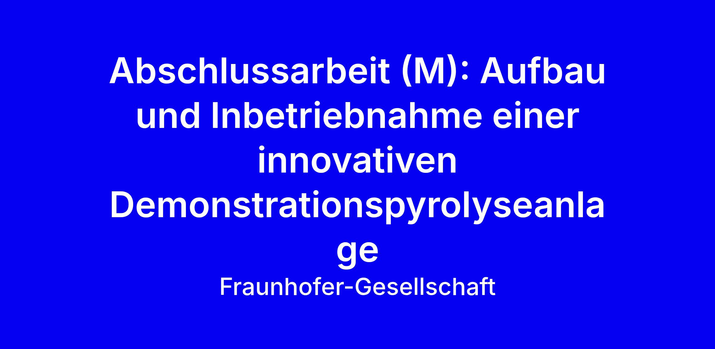 Fraunhofer UMSICHT sucht eine Masterarbeit (M) im Bereich Verfahrenstechnik, Chemieingenieurwesen, Umwelttechnik oder Energietechnik zur Aufbau und Inbetriebnahme einer innovativen Demonstrationspyrolyseanlage im EU-Projekt SEAFAIRER in Sulzbach, inklusive erster Versuchskampagnen, Dokumentation und Datenbankpflege. Must have: Studium in den genannten Bereichen, eigenständige Arbeitsweise, Führerschein Klasse B, sicherer Umgang mit Office-Anwendungen, Englischkenntnisse B1. Nice to have: technisches Verständnis, Hands-On-Mentalität, Deutschkenntnisse B1. Wir bieten ein motivierendes Umfeld mit Teamwork, flexiblen Arbeitszeiten, der Möglichkeit zu mobiler oder Präsenzarbeit, sowie umfassendem Onboarding und Karriereentwicklung. Bewerbungen online, Kennziffer 83052; Fragen beantwortet Pascal Schwarz, Tel. +49 (0) 1703715013.