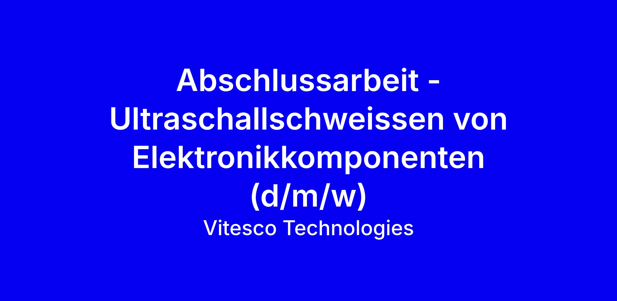 Diese Abschlussarbeit im Bereich Ultraschallschweißen von Elektronikkomponenten am Standort Nürnberg bei Vitesco Technologies bietet Ihnen die Chance, sechs Monate praxisnah an der Entwicklung und Optimierung von Schweißanlagen mitzuwirken, Ultraschallverfahren zu benchmarken und Anwendungsprogramme für konkrete Problemstellungen zu entwickeln. Sie unterstützen bei Prozessstrategie, Prüf- und Prozesstechnik, planen und werten DoE-Versuche eigenständig aus und interpretieren Ergebnisse. Erwartet wird eine Immatrikulation zum Start der Abschlussarbeit, ein Studium in passenden Fächern, gute Kenntnisse in Aufbau- und Verbindungstechnik, DOE, Statistik, MS Office, CAD (Creo bevorzugt) und Minitab, sowie sehr gute Deutsch- und Englischkenntnisse. Bewerben Sie sich mit Bezug zu relevanten Projekten, Lebenslauf und Motivationsschreiben; Kontakt: Sylwia Kocenda. Wir schätzen Vielfalt und eine inklusive Arbeitskultur.