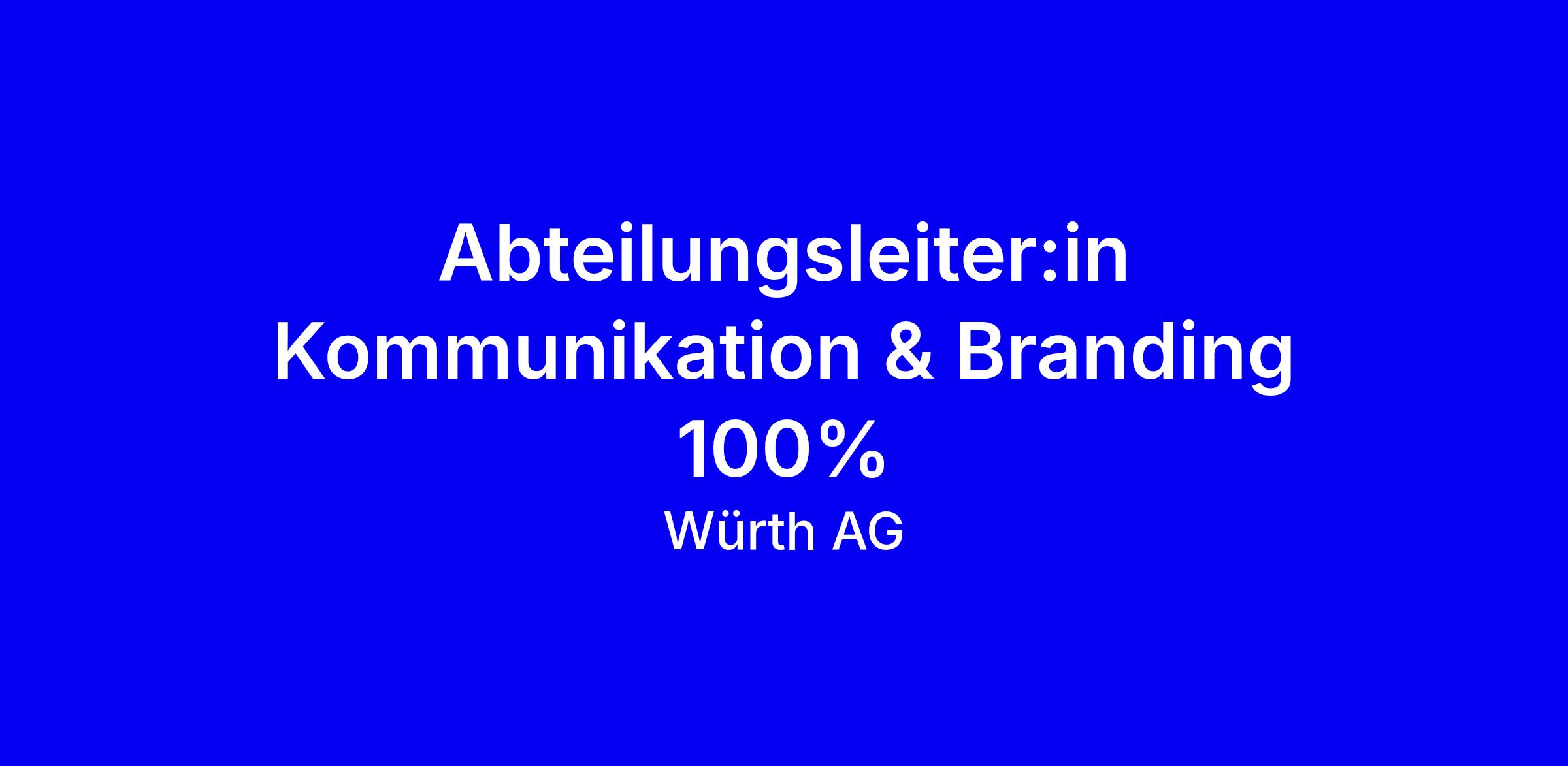 In dieser spannenden Funktion bist du ein wichtiger Teil unseres dynamischen Managementteams im Unternehmensbereich Markt & Business Development. Die Würth AG steht für Qualität, Innovationskraft und eine starke Marke. Um unsere Kommunikationslandschaft strategisch weiterzuentwickeln und unsere Markenpositionierung nachhaltig zu stärken, suchen wir eine erfahrene Führungspersönlichkeit als Abteilungsleiter:in im Bereich Marketing, Kommunikation & Branding.