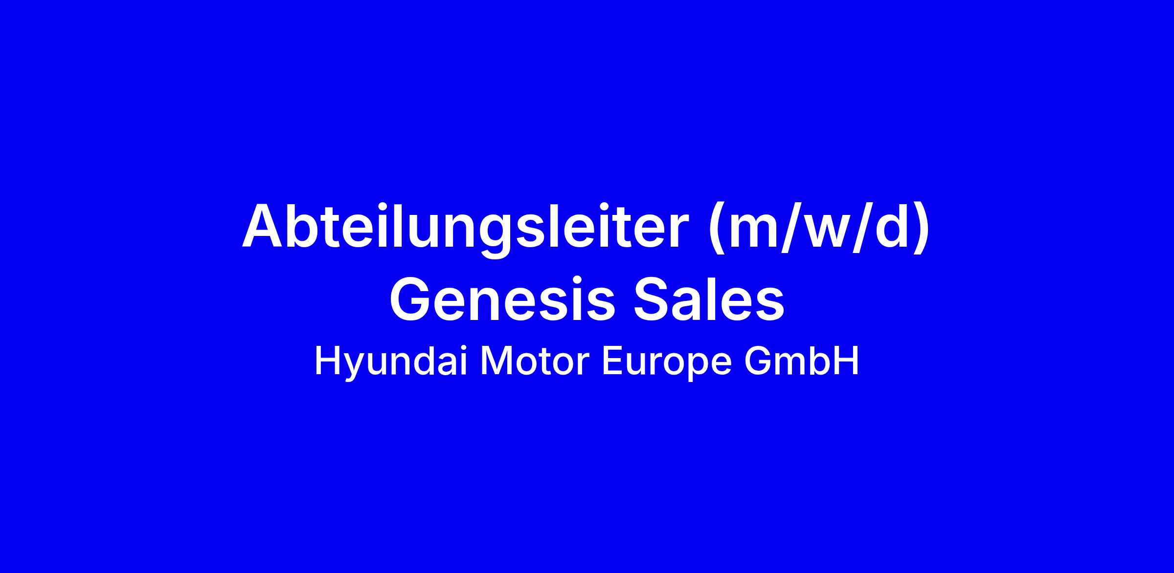 Abteilungsleiter (m/w/d) Genesis Sales