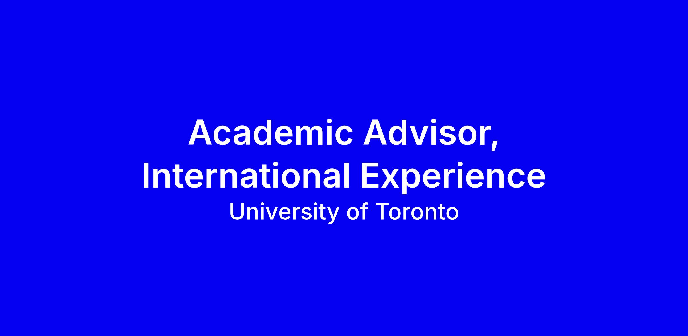University of Toronto invites applications for the Academic Advisor, International Experience at University College Registrar’s Office, a full time term position on the St George campus ending February 28, 2027. The role serves in the student advising team with emphasis on international students, collaborating with the Centre for International Experience and facilitating study abroad opportunities. Responsibilities include advising on educational plans, interpreting policies, guiding petitions, leading workshops, and referring students to campus supports. Essential qualifications: bachelor’s degree or equivalent; four plus years in postsecondary academic advising; experience with international students; proficiency with ACORN/ROSI and Degree Explorer; excellent intercultural communication and organizational skills. Assets include Registrar’s Office experience and familiarity with Arts & Science structures. To apply, tailor your resume and cover letter to show international advising impact, concrete program planning examples, and your ability to manage priorities while maintaining confidentiality. Closing date: February 20, 2026.