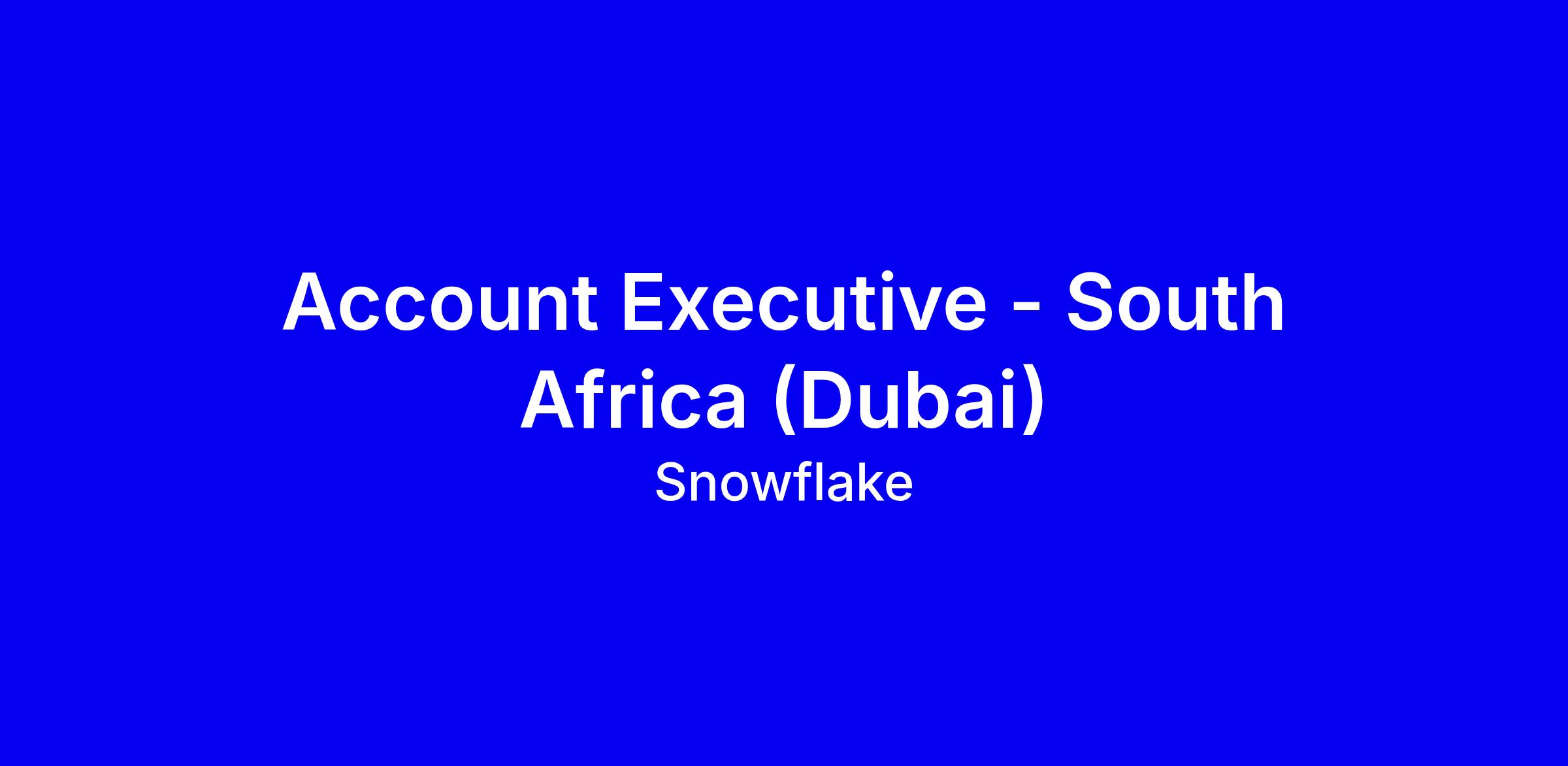 Snowflake is seeking an Account Executive to cover South Africa, onsite in Dubai, driving enterprise sales in a fast growing cloud market. You will build client relationships, prospect new logos, and close deals by aligning Snowflake solutions with IT roadmaps and guiding onboarding. You’ll own quota attainment, territory strategy, collaborate with marketing, and manage ongoing accounts to grow revenue. Ideal candidates have 7+ years field sales, 5+ years in the META region focusing on South Africa, and a track record of generating new business and $1M+ ARR. Bonus points for MEDDPICC and cloud software experience. To apply, quantify impact, show executive engagements, and prove ability to navigate a fast paced startup environment and complex sales cycles.