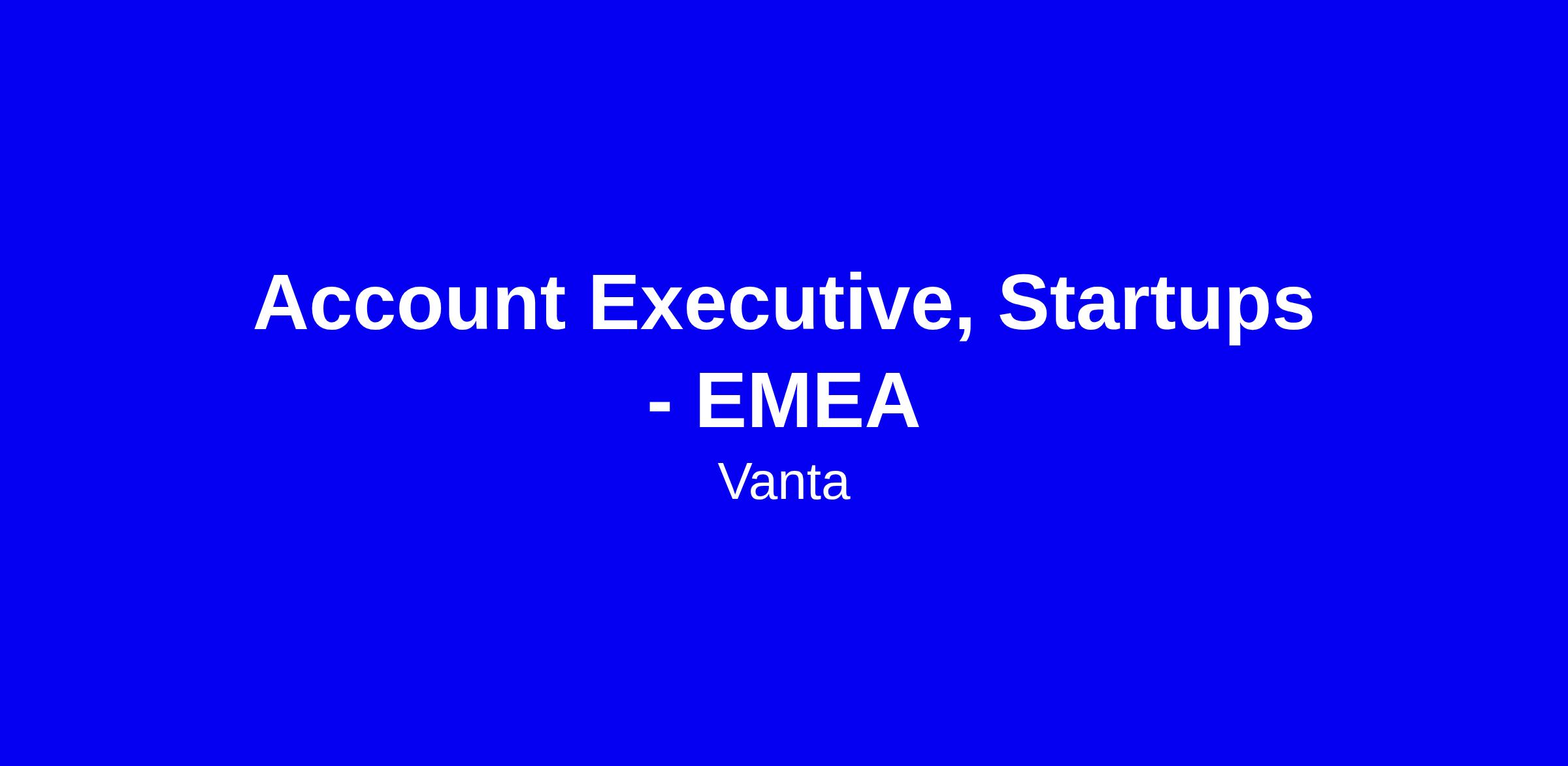 Vanta is seeking a high-energy Account Executive for Startups in EMEA to own the full sales cycle from first touch to close in a fast paced, high-volume environment, with a 30-day close target and a strong outbound focus, based in London on a hybrid schedule (in-office Tue, Wed, Thu). The role targets early-stage startups and SMBs in B2B SaaS, requiring 12+ months of quota-carrying experience, a proven ability to exceed targets, and a talent for rapid discovery calls, tailored demos, and turning velocity into revenue. Apply with measurable wins, examples of empathy for tech buyers, and the ability to surface product feedback to inform GTM. Show how you will help startups build trust with Vanta and accelerate growth.