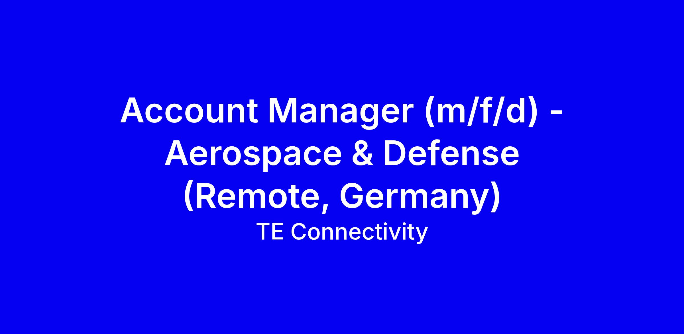 TE Connectivity is seeking an Account Manager (m/f/d) for the EMEA Aerospace & Defense sales team to lead aerospace OEM relationships, manage key accounts, and drive strategic opportunities with cross-functional support for engineering, logistics, and quality. The role blends remote work in Germany with a heavy travel demand (60-70%), requires a technical or commercial background, fluent German and English, and a track record in business development, strategic account planning, and complex project coordination. Key levers include S&OP/IBP forecasting, pricing and quotation, market analysis, and strong stakeholder management. Tips: tailor your CV to aerospace/defense, quantify wins, demonstrate cross-functional leadership, apply via TE's official careers site.