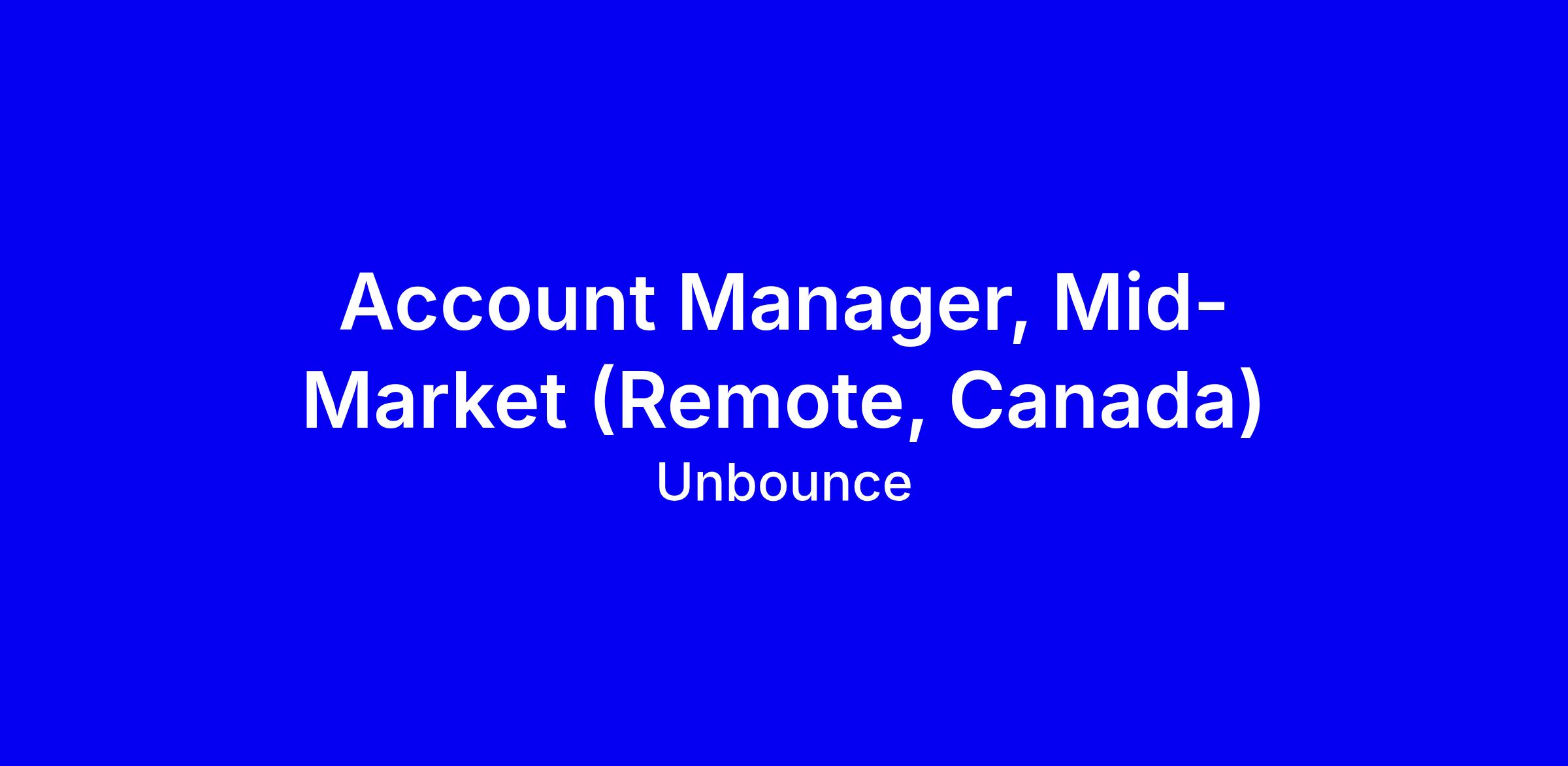 Unbounce is hiring a Mid-Market Account Manager (Remote Canada) to own a portfolio of 40 to 60 mid-market accounts, balancing high touch relationship building with scalable training and renewals to drive ROI. You will lead Quarterly Business Reviews with VPs and Directors, conduct deep-dive trainings, navigate Legal IT Procurement Finance for multi-stakeholder deals, forecast renewals six to nine months out, and manage renewals negotiations. Success requires 3–5 years in B2B SaaS Account Management, a proven Net Revenue Retention north of 100 percent, and a data driven approach using Gainsight, ChurnZero or Salesforce, plus a teaching plus closing mindset. In your application, share concrete ROI from expansions, QBRs, and adoption velocity, and show alignment with Unbounce values and remote culture.
