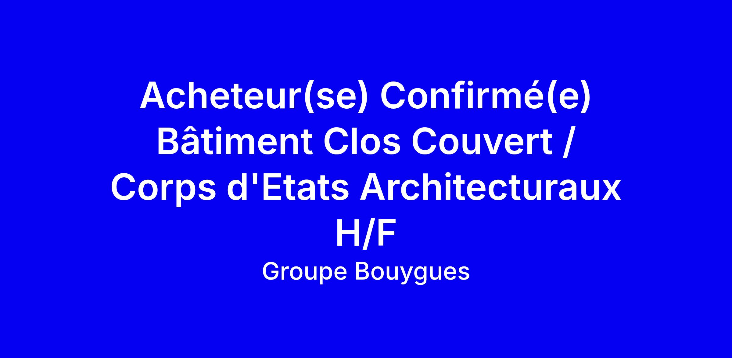 Acheteur(se) Confirmé(e) Bâtiment Clos Couvert / Corps d'Etats Architecturaux H/F