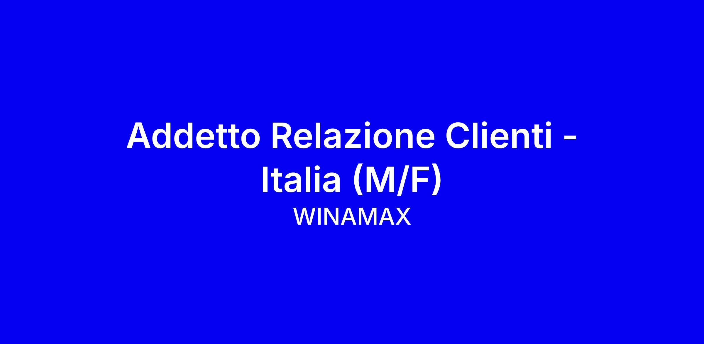 Con sede nel cuore di Parigi, stiamo rivoluzionando l’industria del gioco online! Leader nel poker e nelle scommesse sportive in Francia, con 350.000 giocatori e 600.000 scommettitori mensili, siamo presenti in Spagna, Germania e prossimamente in Italia e Portogallo. Offriamo ai nostri giocatori un’esperienza eccezionale, al tempo stesso tecnica, creativa e di alta qualità. Innovazione, unità, appartenenza: i nostri valori plasmano una cultura aziendale multiculturale e unica.E se anche tu avessi un futuro nel gioco?DESCRIZIONE DEL RUOLOAll’interno del servizio clienti di Winamax, vero pilastro della soddisfazione dei nostri giocatori, sarai incaricato/a di rispondere alle loro domande e alle loro richieste: informazioni, consigli, gestione del conto di gioco, reclami, ecc. Il tuo obiettivo: ottimizzare la loro esperienza di gioco e favorire una migliore comprensione delle nostre offerte di poker e scommesse e dell’utilizzo dei sistemi di gioco a loro disposizione.La tua missione principale si svolgerà su tutti i canali di contatto con i nostri clienti: email, social media, eventi online e live.Come garante dell’immagine aziendale, se un giocatore sarà soddisfatto del servizio e dell’attenzione ricevuti da Winamax, il merito sarà tuo e dei tuoi colleghi del servizio clienti!PROFILO RICHIESTOSei appassionato di poker o di scommesse, o meglio, di entrambi! Inoltre:• Hai una conoscenza ineccepibile della lingua italiana: disponi di impeccabili capacità redazionali e di una perfetta espressione orale • Sei reattivo e rigoroso• Hai padronanza del pacchetto OfficeI tuoi punti di forza per avere successo in questo ruolo:• Capacità di ascolto• Spirito di squadraLa tua vita personale ti consente di lavorare in modo stabile secondo i turni a rotazione previsti del nostro servizio clienti (7.00-15.00, 15.00-23.00, 23.00-7.00), inclusi diversi sabato e domenica al mese.CONDIZIONI• Ideale come primo impiego• Durata del contratto di lavoro: 12 mesi• Luogo di lavoro: Parigi• Disponibilità per assunzione immediata• 35 ore settimanali con turni lavorativi notturni e nei week-end• Retribuzione fissa + variabilePROCESSO DI SELEZIONEFasi della selezione:• Call HR (15/30 minuti)• Test scritto (45 minuti)• Colloquio finale con Alexis, responsabile supporto clienti, e Mathieu, responsabile controllo qualità (60 minuti)Per garantire un’esperienza ottimale ai candidati i processi di selezione durano, in media, tra le 2 e le 4 settimane.PERCHÉ UNIRTI A NOI?Oltre al nostro universo dedicato al poker e alle scommesse sportive, offriamo anche altri vantaggi!• Una cultura aziendale multiculturale e unica• Una settimana lavorativa di 4 giorni per la maggior parte dei nostri team• Un ambiente di lavoro conviviale, nel cuore di Parigi (rooftop con vista sulla Tour Eiffel, sala videogiochi e palestra…)• Opportunità di mobilità interna• Una vita aziendale dinamica, con serate ed eventi organizzati regolarmente (tornei di poker, serate a tema, barbecue per tutta l’estate…)• Premi di partecipazione agli utili• Accesso al programma di referral aziendale (bonus fino a 5.000 €)• Ristorante aziendale (o buoni pasto)• Un’ottima assicurazione sanitaria integrativa• 6 settimane di ferie retribuite