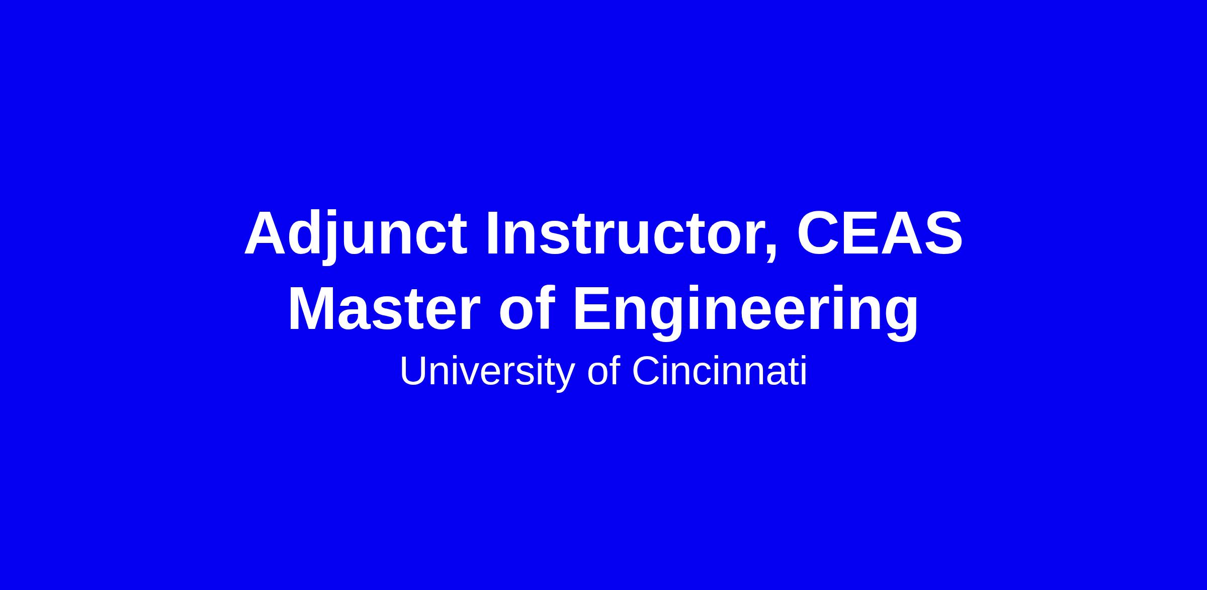University of Cincinnati’s College of Engineering and Applied Science is building a general pool of term adjunct instructors for the Master of Engineering program to teach graduate courses in areas like project management, quality and leadership. Positions are filled as needs arise and renewed based on teaching performance; courses may be day or evening and offered in person or online. Ideal candidates hold a Master’s or PhD in engineering and have college‑level teaching experience or strong related industry experience. To apply, create a profile and submit a complete UC application through the applicant portal; current UC employees must apply via SuccessFactors. Tailor materials to the practical focus of the program.