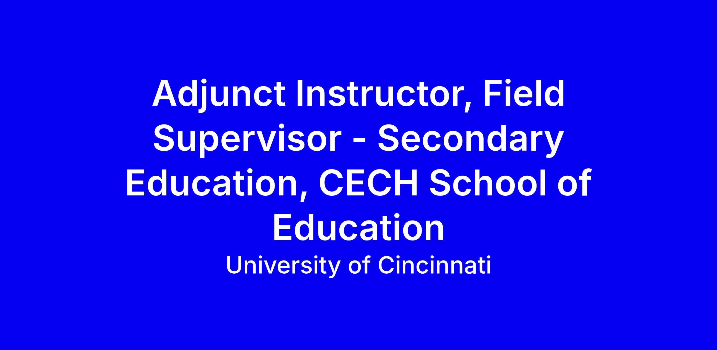 UC's CECH School of Education is seeking part-time adjunct field supervisors to mentor and evaluate PK-12 teacher candidates at partner sites. The role centers on supervising, observing, and evaluating field experiences, delivering constructive feedback, communicating with candidates, mentor teachers and UC faculty, and reporting progress to the Field Coordinator; occasional meetings and field observations required. Ideal candidates hold an academic degree in the discipline with teaching experience, and strong written and oral communication; PK-12 teaching or supervisory license and master’s degree are preferred. You must be available during the typical school day, have reliable transportation, and be comfortable using Canvas, Teams, and Zoom. Internal UC staff must apply internally via SuccessFactors, and all hires require official transcripts and I-9 verification.