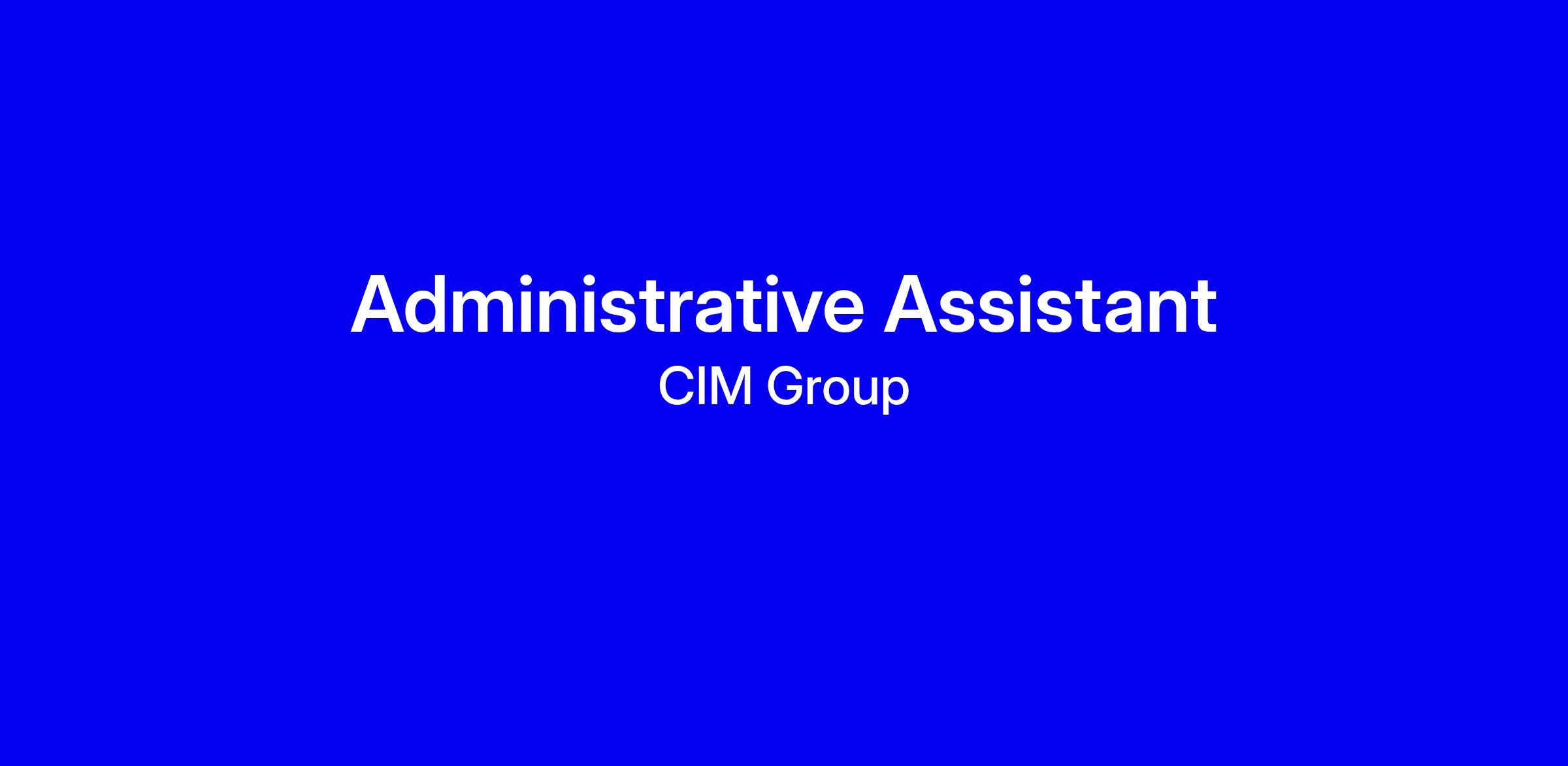 ABOUT CIM GROUP:CIM is a community-focused real estate and infrastructure owner, operator, lender, and developer. Our team of experts works together to identify and create value in real assets, benefiting the communities in which we invest. Our focus on enhancing communities is unwavering, and we strive to make an even greater impact in the years to come. Join us and make an impact today!POSITION PURPOSE:Provide administrative support to the Development Infrastructure team.