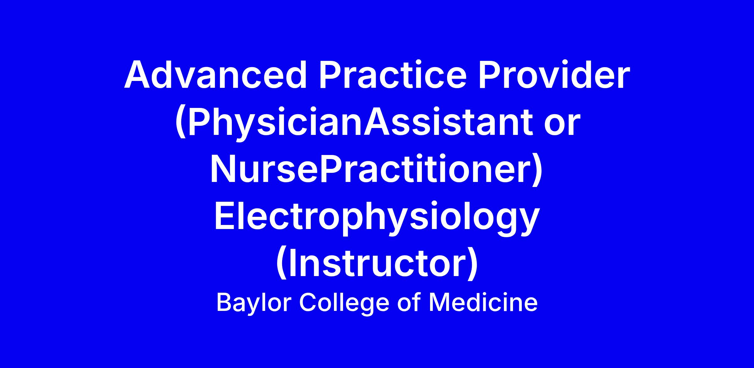 Baylor College of Medicine seeks an Advanced Practice Provider (Physician Assistant or Nurse Practitioner) to join the Electrophysiology team as an Instructor. This full-time role delivers patient care under physician supervision, including history taking, exams, ordering and interpreting diagnostics, prescribing treatments, and writing notes; collaborate with providers and staff to identify patients for care management; maintain accurate records; provide follow up per protocol and communicate with patients and families. Requirements: master’s degree in PA studies or NP program; Texas PA or RN/NP license; national certification (NCCPA or AANP/ANCC); BLS; cardiology experience preferred though not required. Tips: emphasize EP exposure, team collaboration, documentation accuracy, and patient-centered care in your resume and cover letter.