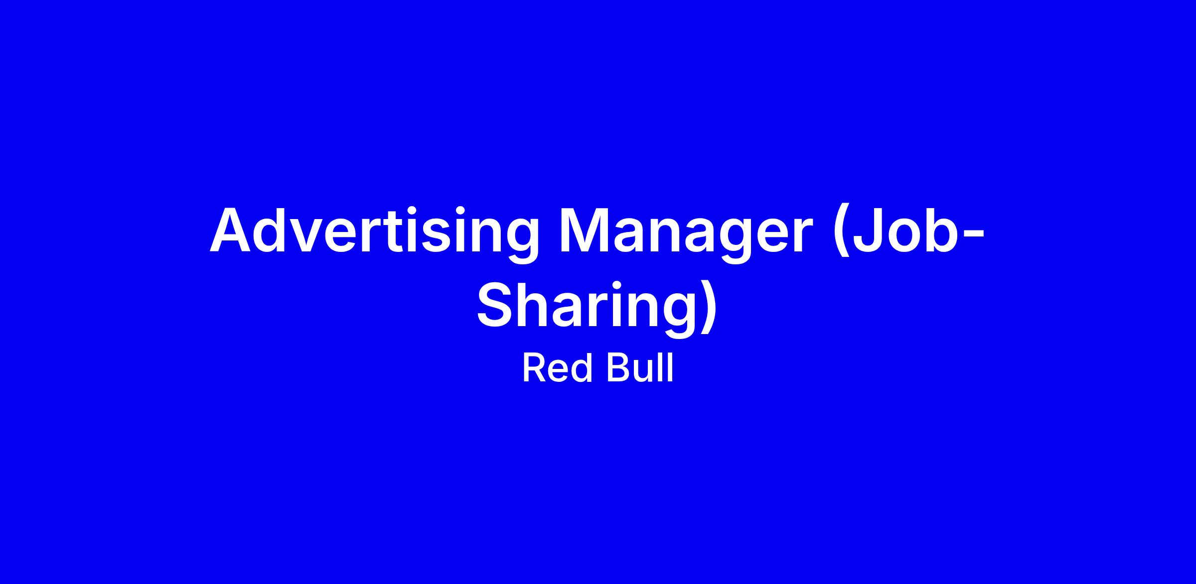 Du bist in der Media-Welt zuhause, analytisch sowie strategisch stark und inspiriert von den Aufgaben als Advertising Manager? Dann haben wir den perfekten Job für dich: Gemeinsam mit deinem Job-Sharing Partner entwickelst du in einem Arbeitspensum von 50-60% inspirierende Werbekampagnen, die die Welt von Red Bull ins Rampenlicht rücken und die Marke bei der nächsten Generation von Schweizer Konsument:innen relevant halten.