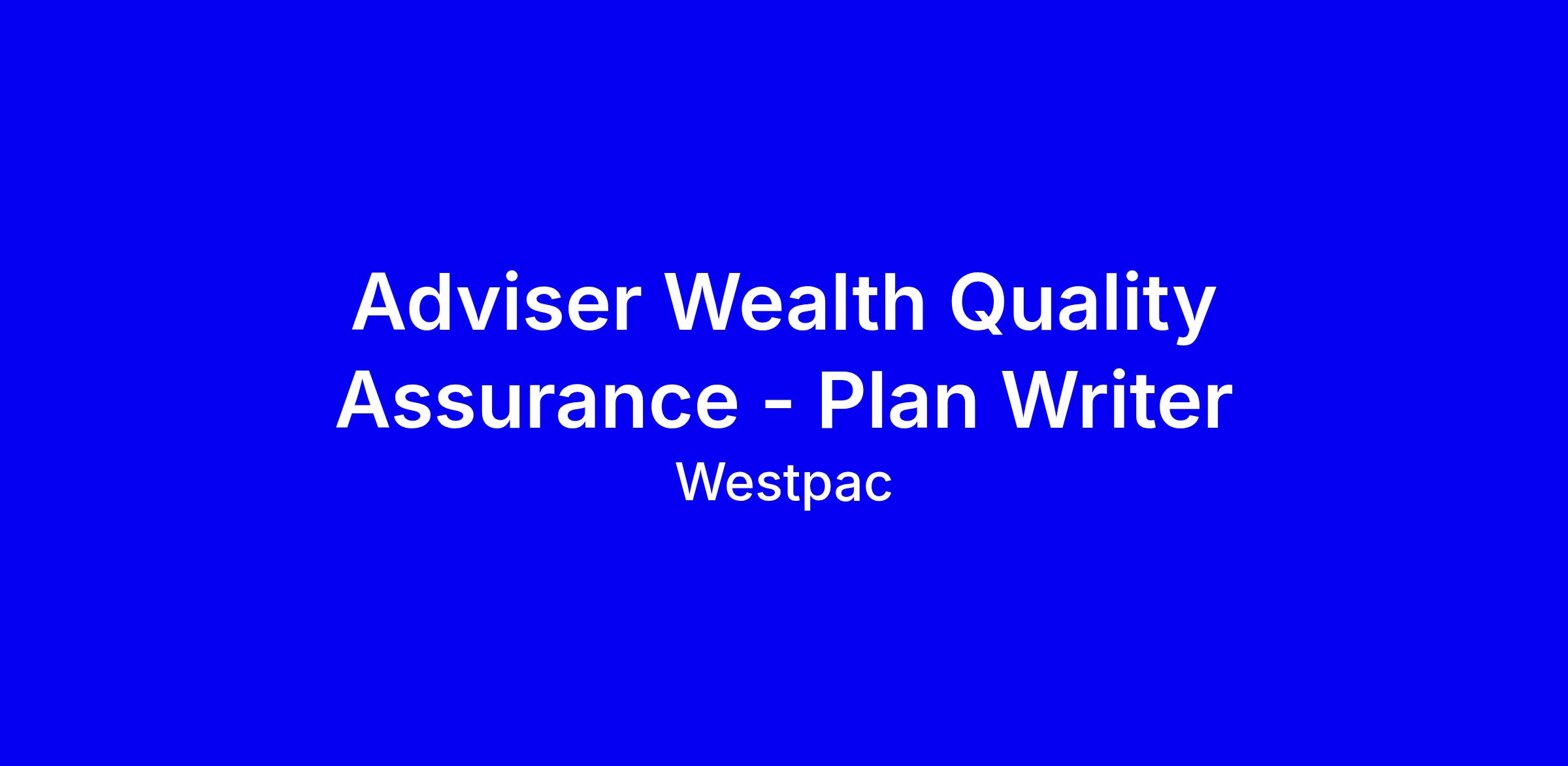 Westpac New Zealand is hiring a Wealth Advice Quality Manager (Plan Writer) for a six month fixed term, full time, based in Auckland, Wellington or Christchurch with a hybrid work setup. You will partner with Advisers to produce high quality, compliant financial advice documents that meet customer needs while providing training and day to day guidance to lift capability. The role requires at least five years in financial services, three plus years in a similar QA role, a Graduate Diploma in Personal Financial Planning or NZ Certificate in Financial Services Level 5, and preferably a degree with XPLAN experience. To apply, tailor your CV and cover letter to demonstrate how you have improved outcomes through QA, collaboration with advisers and leadership, and your ability to thrive in a hybrid environment.