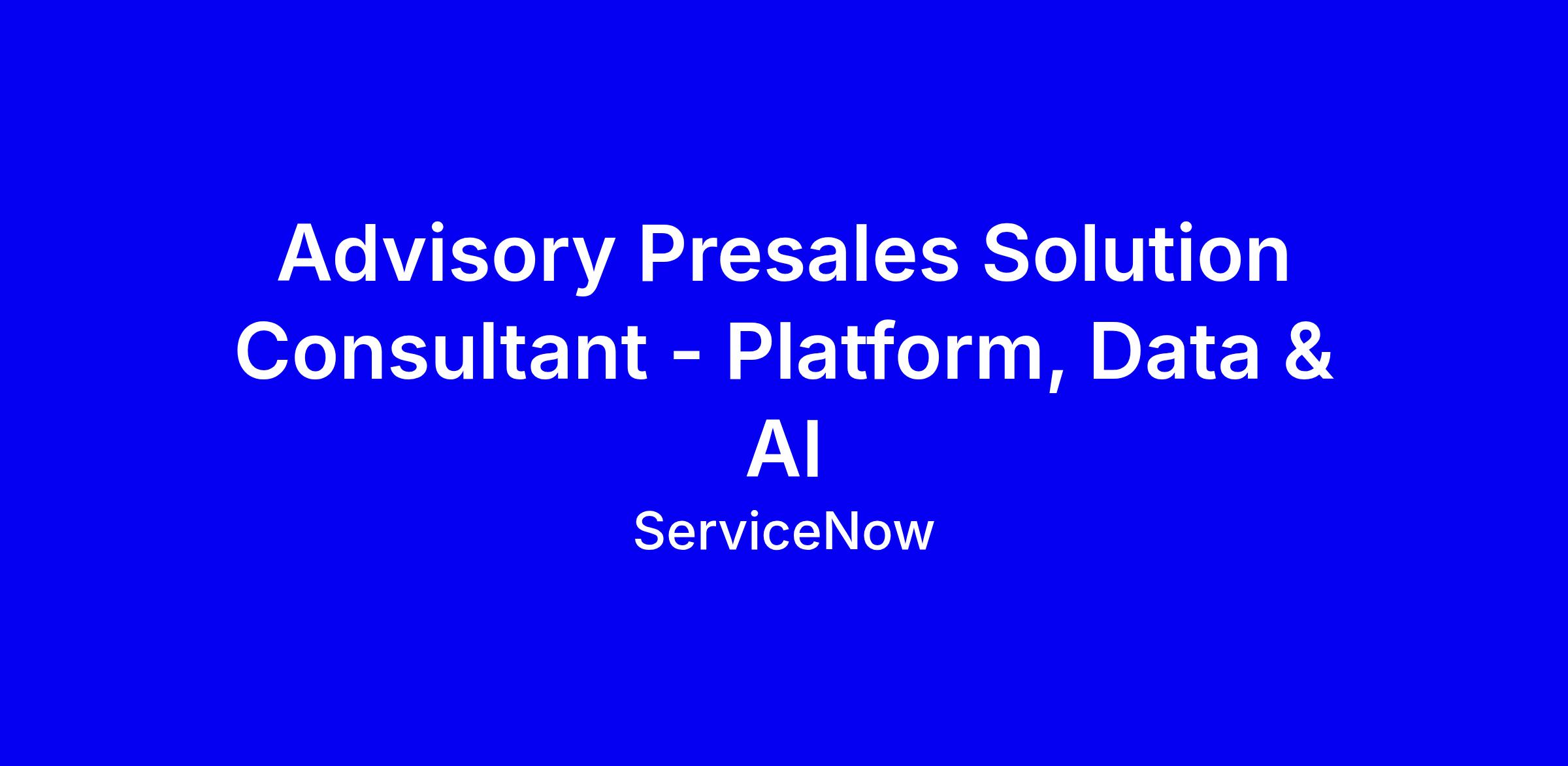 As an Advisory Presales Solution Consultant – Platform, Data & AI you will be the technical and solution expert partnering with Solution Sales Executives, focusing on Data solutions while driving also broader ustom Application and AI initiatives. Your mission is to drive innovative business outcomes for enterprise customers by architecting, positioning, and delivering advanced AI and Data solutions on the ServiceNow platform.