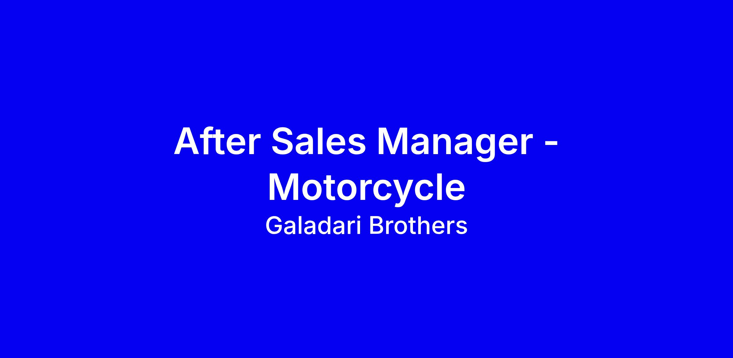 After Sales Manager – Motorcycle is responsible for leading and managing all after-sales operations, including