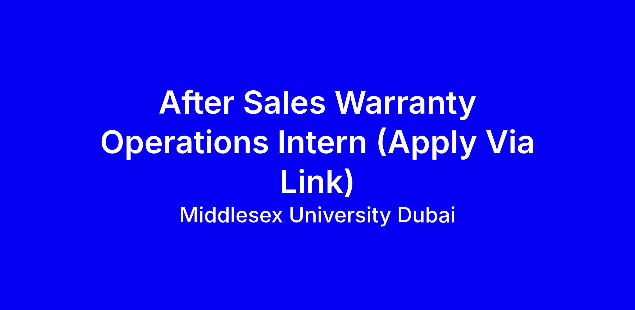 Middlesex University Dubai is seeking an After Sales Warranty Operations Intern for an onsite internship in Dubai. This role supports warranty processes, customer service, data entry, and cross‑functional coordination to improve post‑sale experiences. You’ll gain hands‑on exposure to warranty claim handling, supplier coordination, and service quality metrics within a university setting. Important: only applicants who apply via the provided link will be considered for review, and the link is https://mdx.jotform.com/260410522501843; not the Apply Now button. To strengthen your candidacy, tailor your resume to warranty operations, highlight relevant projects, and demonstrate reliability, proactive communication, and a collaborative mindset.