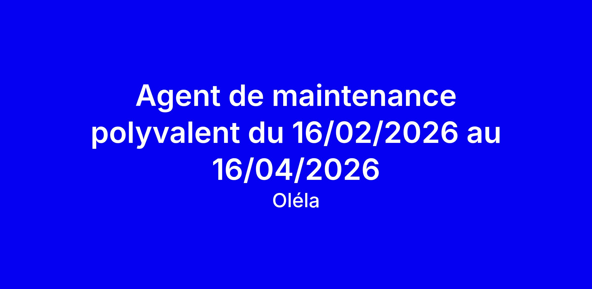 Cette offre d’Agent de maintenance polyvalent est une mission saisonnière de 2 mois, du 16/02/2026 au 16/04/2026, à Saint-Pierre-Quiberon, camping Park er Lann, sur site. Vous assurerez la maintenance des hébergements et bâtiments, l’entretien des espaces verts, la piscine et jeux, et la réception des marchandises. Le candidat idéal possède le permis B, les habilitations électriques et CACES selon les missions, ainsi que des connaissances en bâtiment, espaces verts et maintenance piscine, avec rigueur, autonomie et sens du service client. Avantages: logement sur site possible, mutuelle, 35 heures modulables. Pour postuler, adaptez votre CV en valorisant vos multi-compétences et vos certifications, et montrez votre disponibilité weekends et jours fériés, en mettant en avant les valeurs d Oléla.