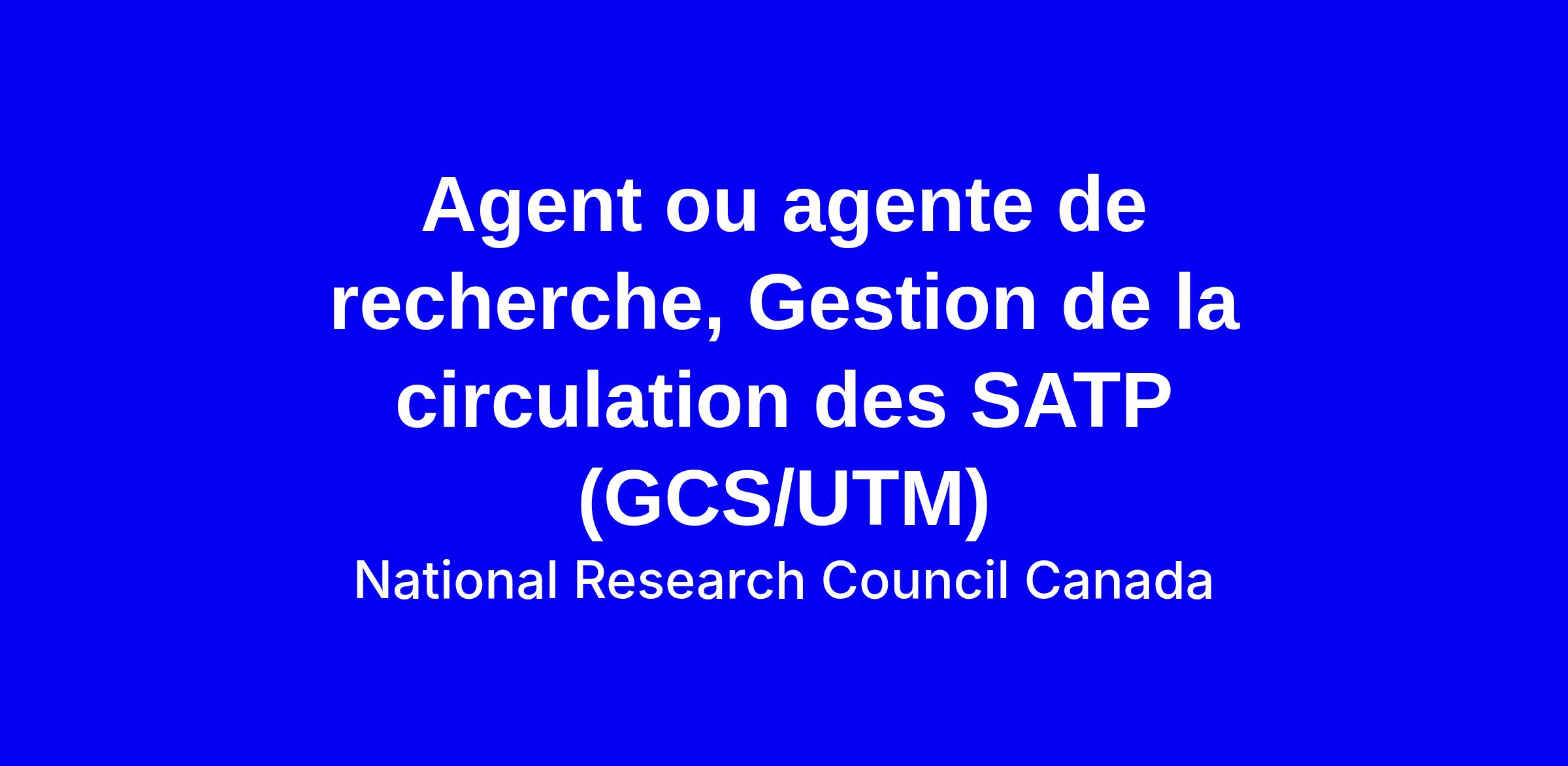 Nous sommes à la recherche d’un agent ou d'une agente de recherche en gestion de la circulation des SATP (systèmes d’aéronefs télépilotés) (GCS) ou "Unmanned Traffic Management (UTM" afin de soutenir notre Centre de recherche en aérospatiale. La personne choisie doit partager nos valeurs fondamentales relatives à l’intégrité, à l'excellence, au respect et à la créativité.