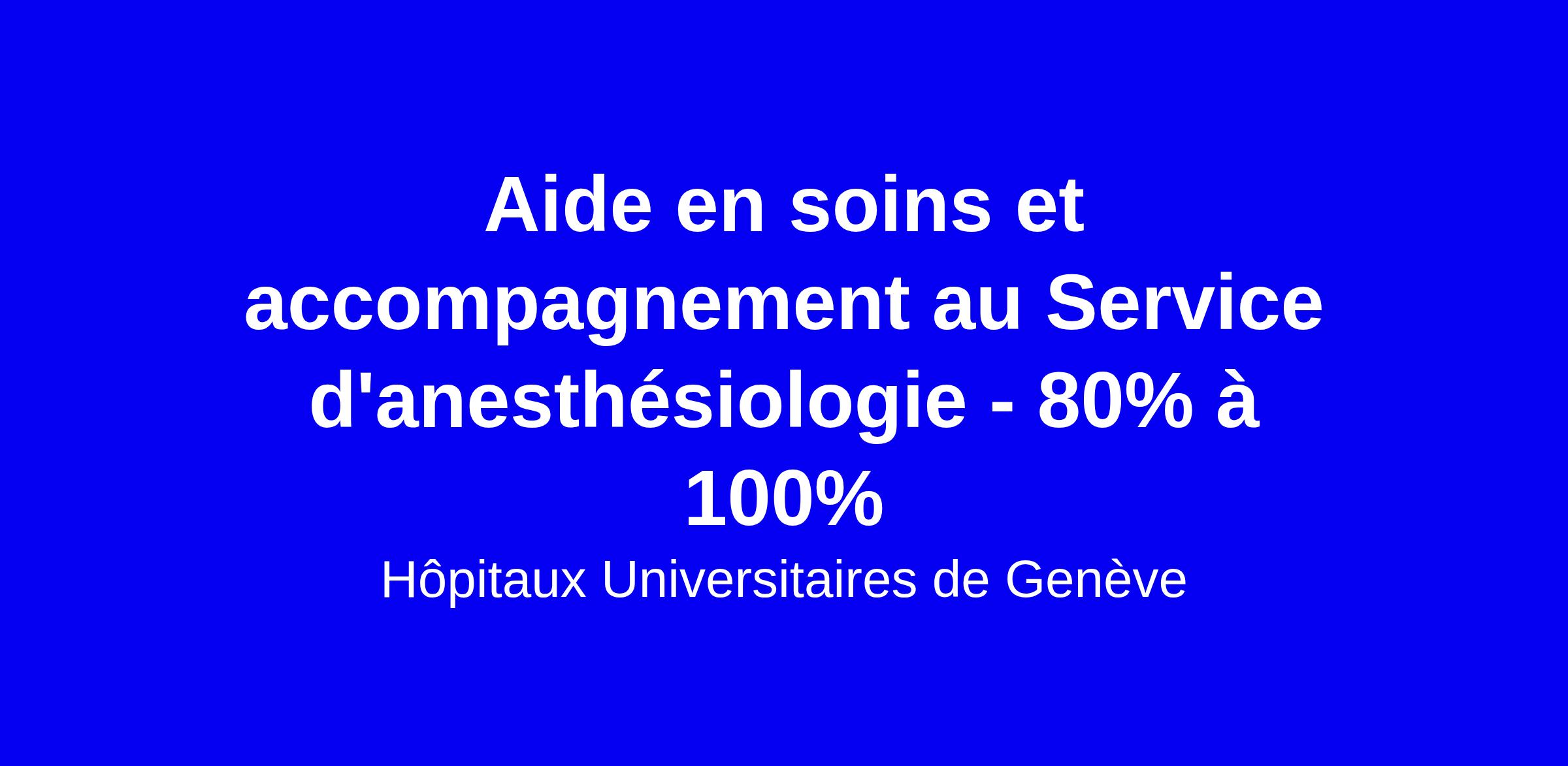Les HUG recrutent 1 à 3 aides en soins et accompagnement pour le service d’anesthésiologie, 80 % à 100 % CDI ou CDD. Le poste implique le soutien des patientes et patients dans les blocs opératoires et les unités post‑interventionnelles, l’aide à l’hygiène et au confort, et l’entretien du matériel et des stocks. Profil: AFP d’aide en soins et accompagnement ou certificat d’aide‑soignant, au moins deux ans d’expérience hospitalière, maîtrise du français, autonomie et capacité à gérer le stress. Postulez via la plateforme de recrutement avant le 2 février 2026 en joignant lettre de motivation, CV, copies des diplômes et les deux derniers certificats de travail; précisez votre connaissance des HUG et votre aptitude à travailler en équipe. Seules les candidatures via la plateforme seront prises en compte.