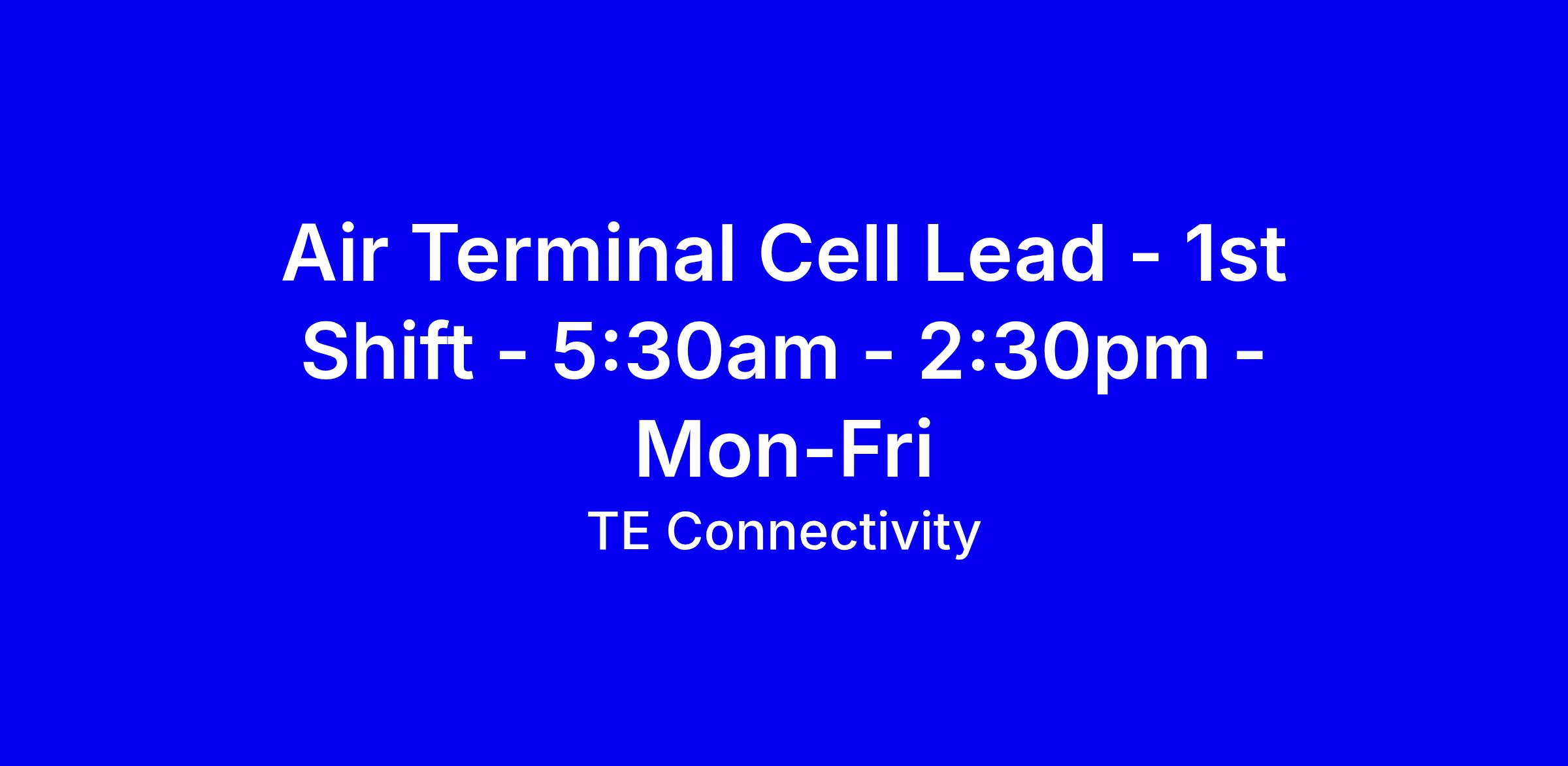 TE Connectivity is seeking an Air Terminal Cell Lead for the 1st shift in Grayslake, IL, Monday through Friday, 5:30 am to 2:30 pm. The role keeps the cell on schedule, ensures high quality, and applies lean practices such as 5S. Core duties include first piece inspection, guiding and training team members, setting daily expectations, inspecting finished orders, maintaining a clean and safe area, troubleshooting equipment, and updating Gemba boards for daily production meetings. Requirements: high school diploma, basic computer skills, ability to read blueprints, 3 to 5 years in manufacturing, strong communication, and stamina to stand and lift up to 50 lbs. Apply on TE careers site with a focused resume highlighting lean leadership, quality, and team development; beware of fraud.