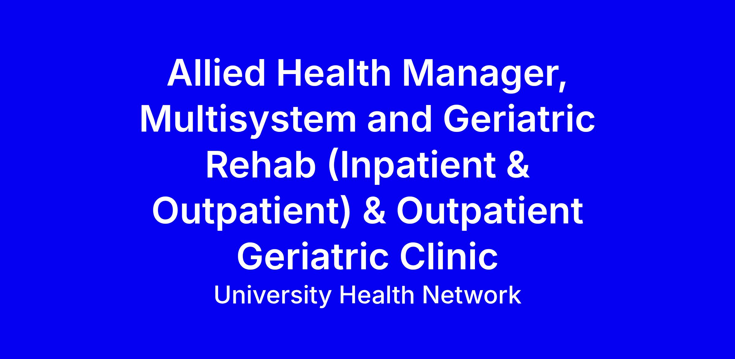 UHN is seeking an Allied Health Manager to lead multidisciplinary services across Outpatient Geriatric Rehab, Outpatient MSK Rehab, Outpatient Multisystem Rehab, and inpatient units including the Dementia, Geriatric and MSK Rehab units. The role covers care delivery, workforce and financial management, quality documentation, and change leadership for a complex portfolio on an 18 month temporary contract at Toronto Rehab University Centre. Requirements include a Bachelor’s in a regulated health profession, a Masters in Health Administration or equivalent, 5+ years clinical experience, 2+ years supervisory experience, RHPA licensure, and proven change management. To apply, tailor your resume to show cross program leadership, budgeting, patient-centered care, and interdisciplinary collaboration, quantify outcomes, and cite relevant legislation knowledge. Closing date March 13 2026. Check email regularly; accommodations available.
