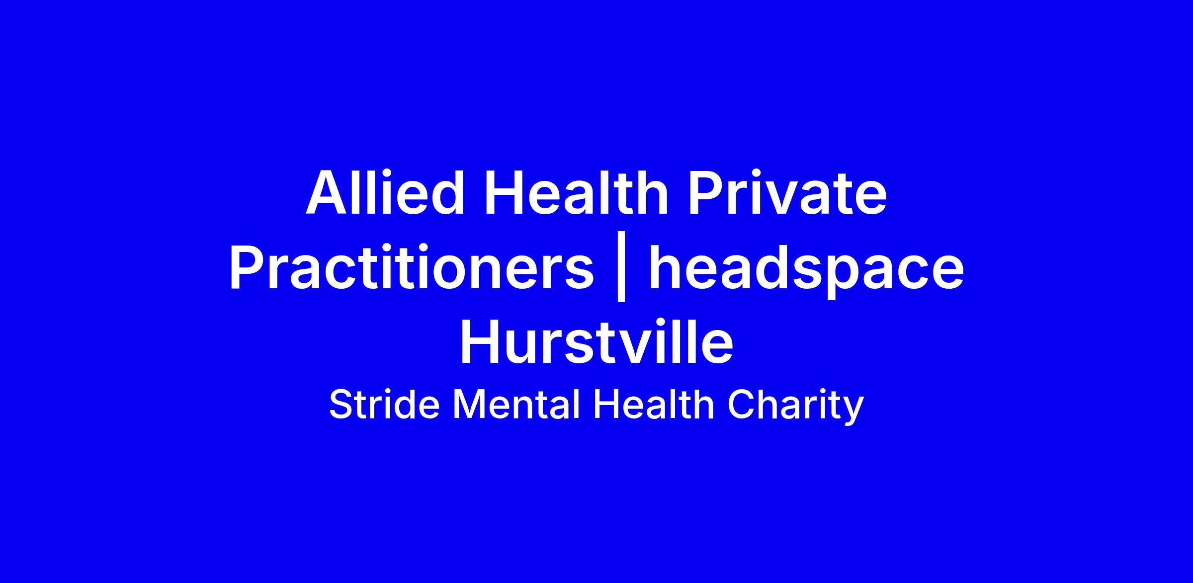 Stride Mental Health Charity seeks Allied Health Private Practitioners to join headspace Hurstville and support 12-25 year olds with mental ill health. You will deliver quality assessments and psychological, counselling and therapeutic interventions, run programs, liaise with stakeholders. Income comes from Medicare billings under the MBS Better Access, with contractors handling invoicing. Benefits include flexible work days, admin support for billing and bookings, daily case reviews, a paperless IT-enabled practice, a referral base, and access to clinical education and funded development. Requirements: current AHPRA registration, Medicare eligibility, and qualifications such as Clinical or General Psychologist, Mental Health Accredited Social Worker or Occupational Therapist. Apply online with CV and a tailored cover letter that highlights youth experience, group work, stakeholder collaboration, Medicare readiness and alignment with Stride’s inclusive culture.