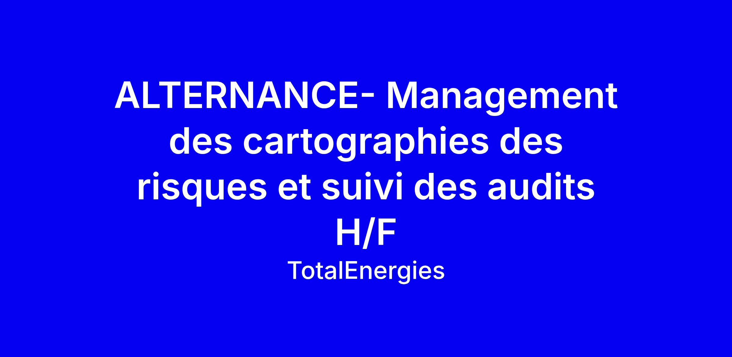 TotalEnergies recrute un(e) alternant(e) en management des cartographies des risques et suivi des audits pour 12 mois, sur site à Paris La Défense (PLD Tour Michelet) au sein de TotalEnergies Marketing Services, dans le domaine Finance, Strategy Economics Business. Vous contribuerez à l’identification et à la cartographie des risques et au pilotage du suivi des audits en soutien des métiers. Profil recherché: moins de 3 ans d’expérience, formation en finance, risques ou contrôle interne, et une motivation forte pour l’alternance. Pour postuler, précisez le rythme d’alternance dans votre CV ou lettre et mettez en valeur votre rigueur, votre esprit analytique, votre sens du travail en équipe et votre intérêt pour l’équilibre entre performance opérationnelle et sécurité financière. TotalEnergies promeut la diversité et l’égalité des chances.