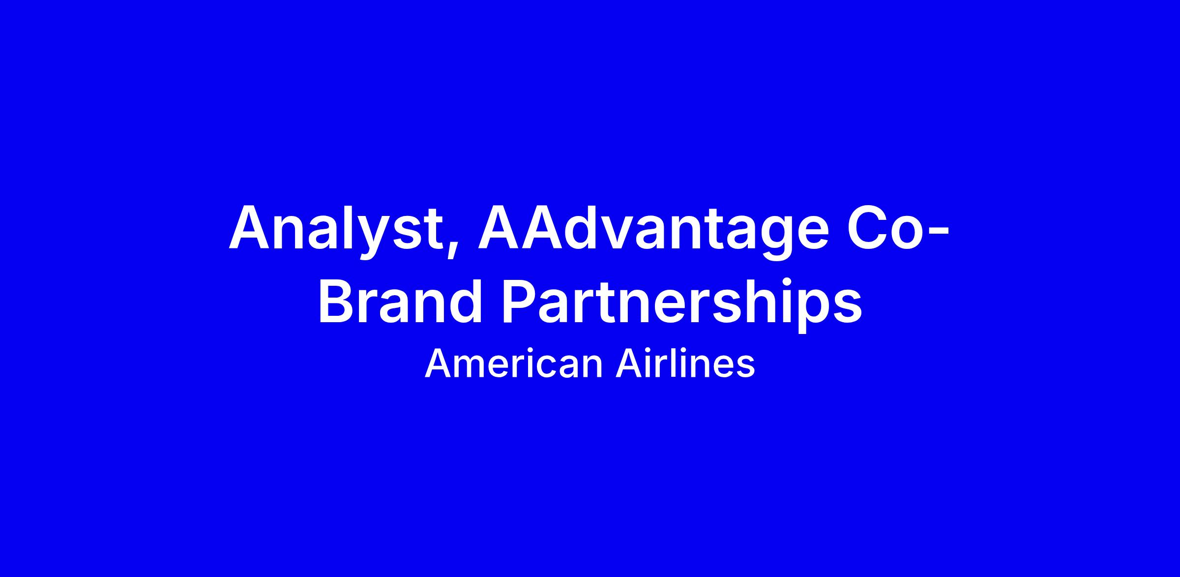 American Airlines is seeking an Analyst for AAdvantage Co-Brand Partnerships to join the Loyalty Co-Brand Team in Fort Worth, TX, full-time and onsite. You’ll support marketing projects that grow the Citi AAdvantage co-brand portfolio, collaborate with internal partners, Citi and Barclays, and vendors, create digital campaign assets, traffic approvals, and manage timelines, performance reporting and invoicing, with travel up to 20%. A bachelor’s degree is required and two years in marketing are preferred; strong project management, relationship building, and analytical skills, plus proficiency in Excel, Word, and PowerPoint, are essential. To apply, tailor your resume to cross-functional partnership success, quantify outcomes, mention any Live Selling experience if applicable, and demonstrate a proactive, innovative mindset and readiness to travel.