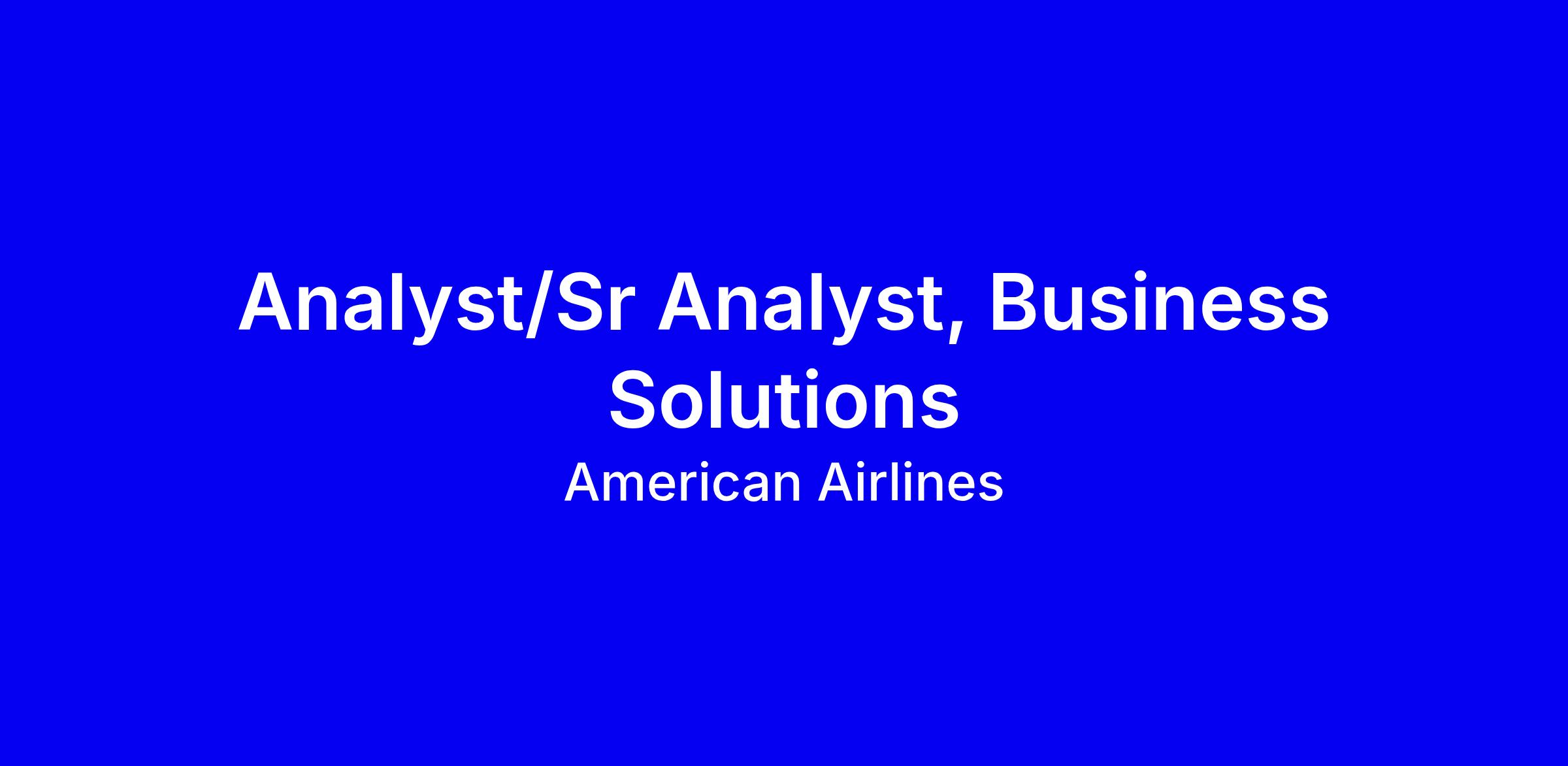 American Airlines is seeking an Analyst or Sr Analyst, Business Solutions to join the Next‑Gen Operations Platform team in the Integrated Operations Center in Fort Worth, onsite. You will partner with operational business units to define technology requirements, assist the Product Manager with planning the scope and integration, coordinate cross‑team implementation and training, lead root‑cause analysis to improve reliability, and maintain comprehensive documentation and plans such as roadmaps, release schedules, risks and tests. Ideal candidates have a bachelor’s degree and at least 3 years of relevant experience; five years in operations, Agile delivery, broad IT and project-management experience are preferred. To stand out, tailor your resume to showcase Agile delivery and cross‑functional wins, demonstrate familiarity with AA procedures and systems, and provide concrete examples of effective leadership‑level communication and problem solving in high‑availability projects while signaling readiness to work onsite in Fort Worth and contribute to an inclusive culture.