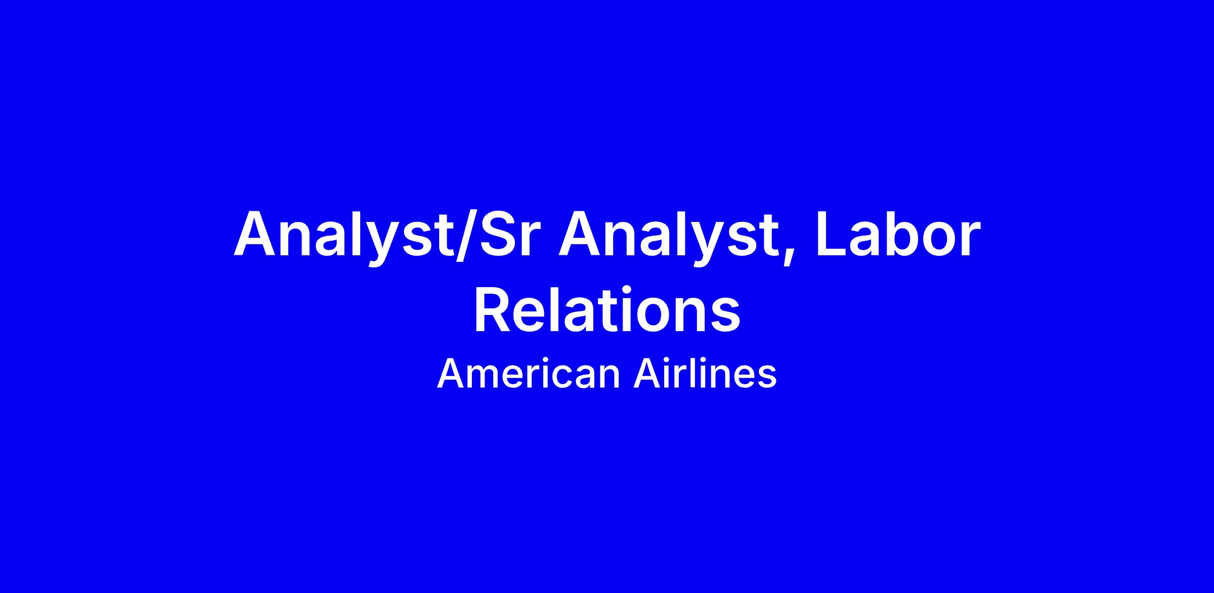 American Airlines is hiring an Analyst/Sr Analyst, Labor Relations in Fort Worth, TX, full-time onsite. In the Legal Department’s Labor Relations team, you’ll support bargaining and grievance management, analyze data, prepare negotiation materials, understand represented contracts, develop business cases and dashboards, and collaborate with internal partners to ensure contract compliance. Ideal candidates hold a bachelor’s in business, economics or industrial relations, 2–3 years in analytics or strategic roles, and proficiency with Excel, Tableau or Power BI; preferred: labor relations exposure, knowledge of CBAs and labor laws, Power Automate, and SHRM-CP or PHR. When applying, tailor your resume to show data-driven bargaining outcomes, cross-functional impact, confidentiality, and readiness for a fast-paced onsite role while highlighting your fit with American’s inclusive culture and travel perks.