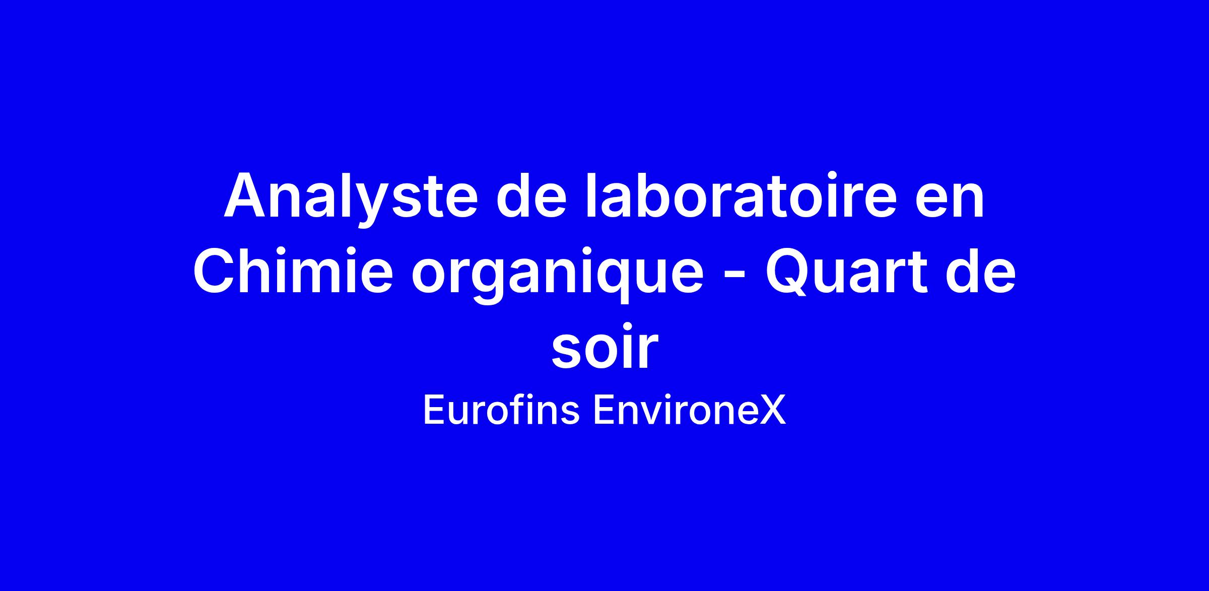 Eurofins EnvironeX recrute un analyste de laboratoire en chimie organique pour un poste sur le quart de soir, temporaire jusqu’en décembre 2026 avec entrée mars 2026, sur site à Québec. Vous effectuerez le dosage par instrumentation (HPLC, GC, GC-MS, GC-FID), vérifier les contrôles qualité et transférerez les résultats dans le LIMS pour approbation, et assurerez l’entretien des instruments. Le profil idéal: DEC ou BA en chimie ou biotechnologies, 2 à 3 ans d’expérience, connaissance des paramètres analytiques et des instruments cités, et aptitude à travailler sous pression tout en restant organisé et orienté service. Pour postuler, adaptez votre CV en mettant en valeur LIMS, maintenance et ISO 17025.