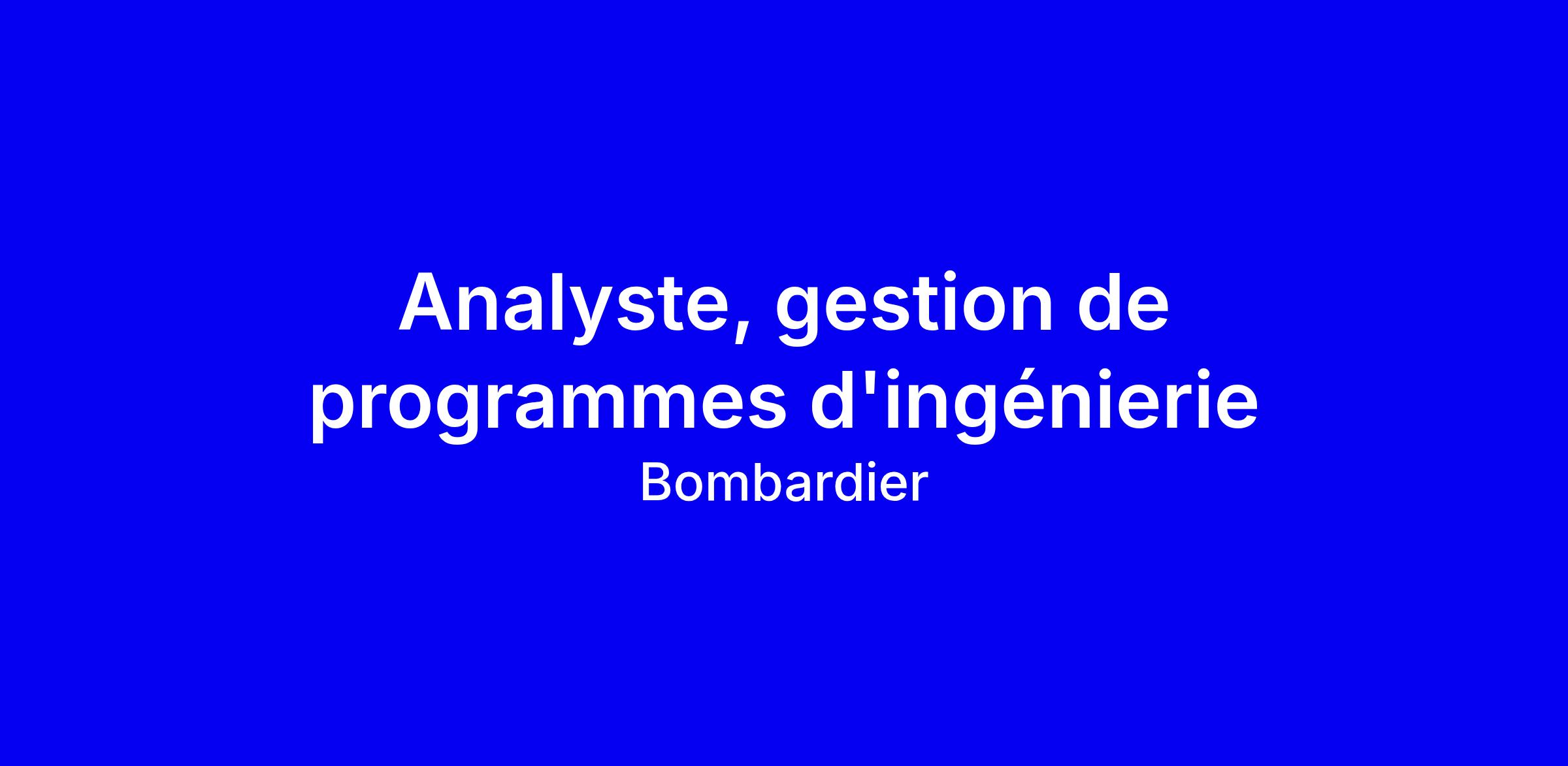 Emploi Analyste, gestion de programmes d'ingénierie