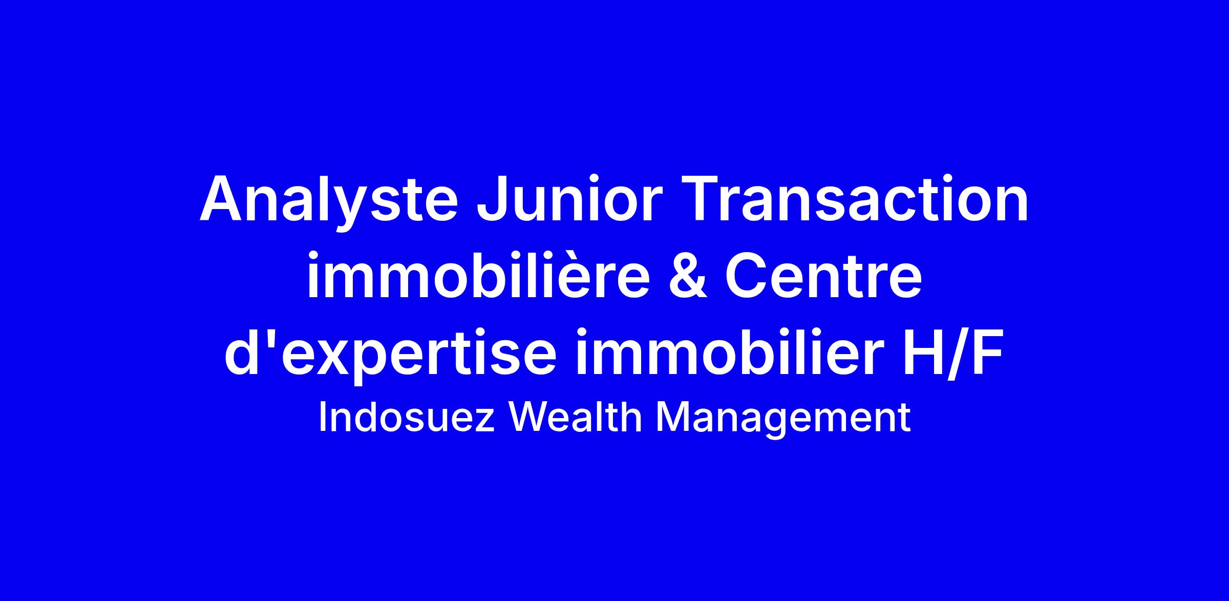 Ce poste d’Analyste Junior Transaction immobilière et Centre d’expertise immobilier H/F chez CA Indosuez est un CDI à Paris, en mode hybride, destiné à soutenir le responsable de la Transaction et l’activité de financement via le centre d’expertise immobilier en France. Vous qualifierez des opportunités, vérifierez la documentation technique et juridique, mettrez en forme des teasers, participerez aux pitches clients et aux visites, et coordonnerez les demandes avec les experts et les équipes internationales. Profil Bac+5 en commerce, droit ou immobilier, 0 à 2 ans d’expérience; connaissance des produits immobiliers et des méthodes de valorisation; rigueur, autonomie, sens du relationnel et esprit client. Conseils: adaptez CV et lettre aux expériences de valorisation et de financement, mettez en avant votre travail en équipe et votre capacité à évoluer dans un contexte international et inclusif.