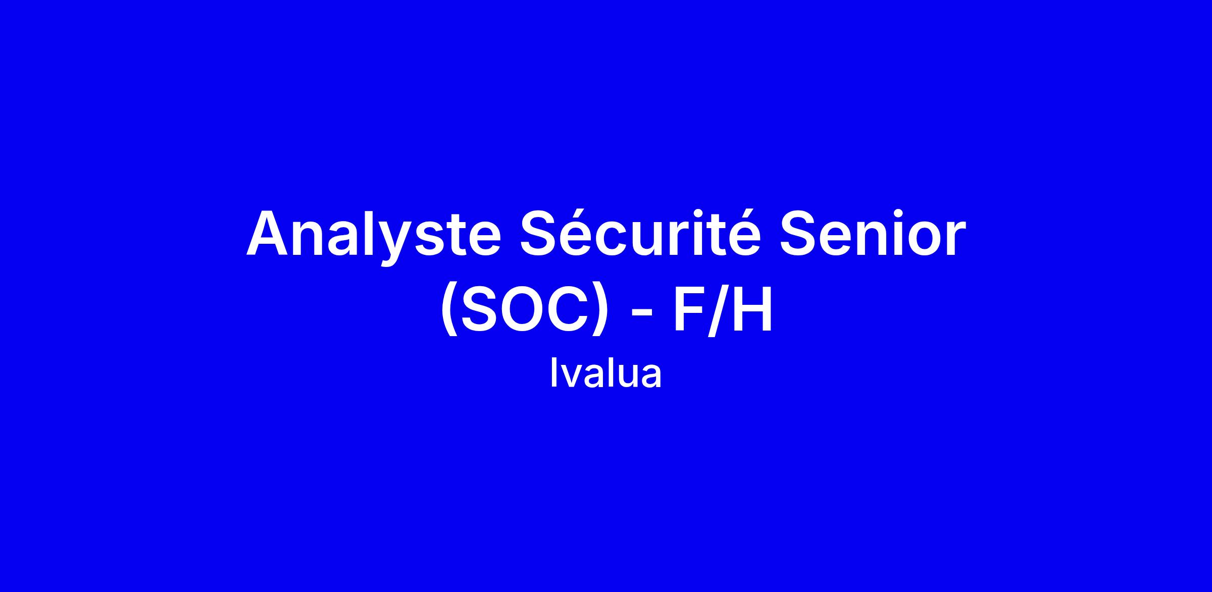 Analyste Sécurité Senior (SOC) - F/H