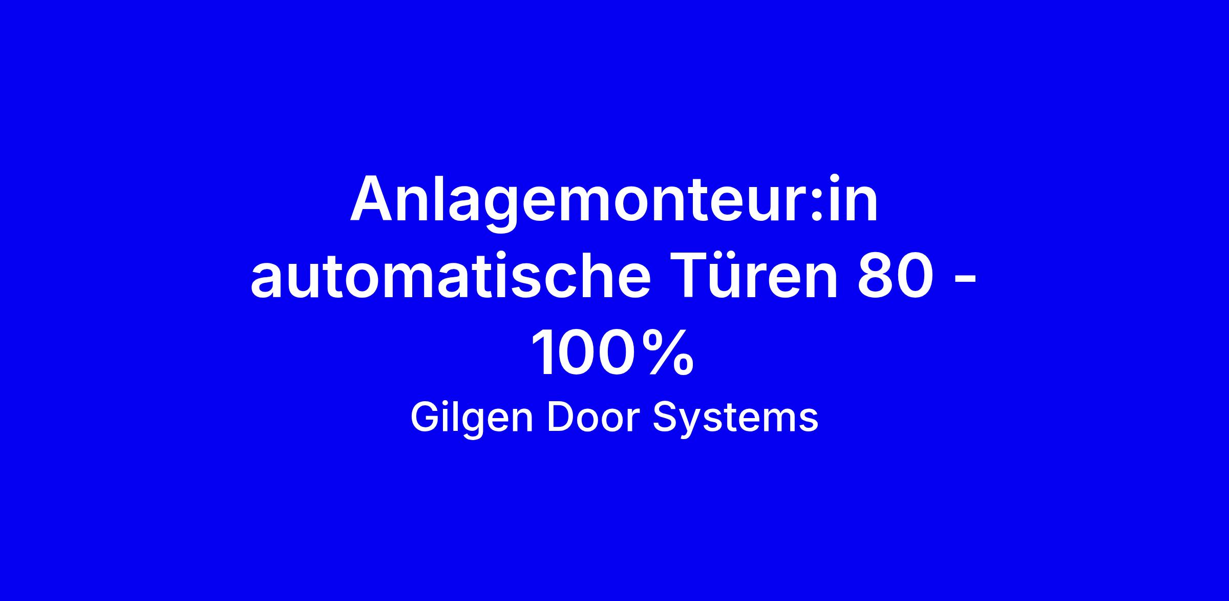 Gilgen Door Systems sucht einen Anlagemonteur/in automatische Türen (80 bis 100 Prozent) in Winterthur, mit Einsatz in Zürich und Schaffhausen. Als Schweizer Marktführer produziert das Unternehmen hochwertige automatische Tür- und Torsysteme, die vor Ort beim Kunden installiert werden. Die Rolle bietet eine fundierte Einarbeitung und stetige Weiterbildung durch die Gilgen Academy sowie attraktive Entwicklungsmöglichkeiten bis hin zu leitenden Montagepositionen. Dein Profil: Abgeschlossene handwerkliche Grundausbildung in Bau, Elektro, Metall, Holz oder Ähnlichem mit starkem Bezug zu Mechanik oder Elektrik; Kenntnisse der Gepflogenheiten auf der Baustelle; Führerausweis B; flexibel, belastbar und kundenorientiert. Wir bieten ein modernes Industrieunternehmen, interdisziplinäre Zusammenarbeit, flexible Arbeitsmodelle, ein eigenes Fahrzeug und eine attraktive Pensionskasse. Bewerbungen online, bei Fragen Sabrina Fankhauser oder Beat Schweizer.