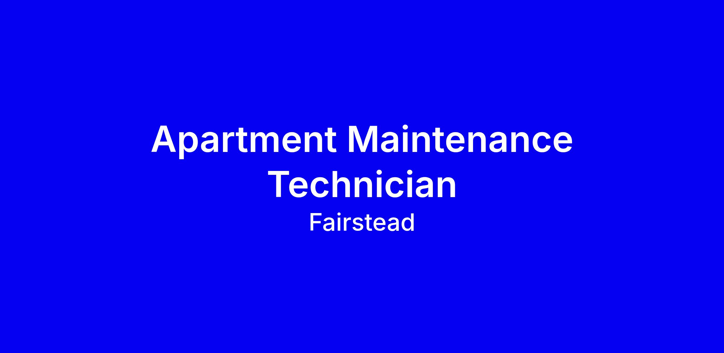 Fairstead is hiring a Maintenance Technician to maintain the day-to-day operations and assume responsibility for maintaining the property's physical assets.