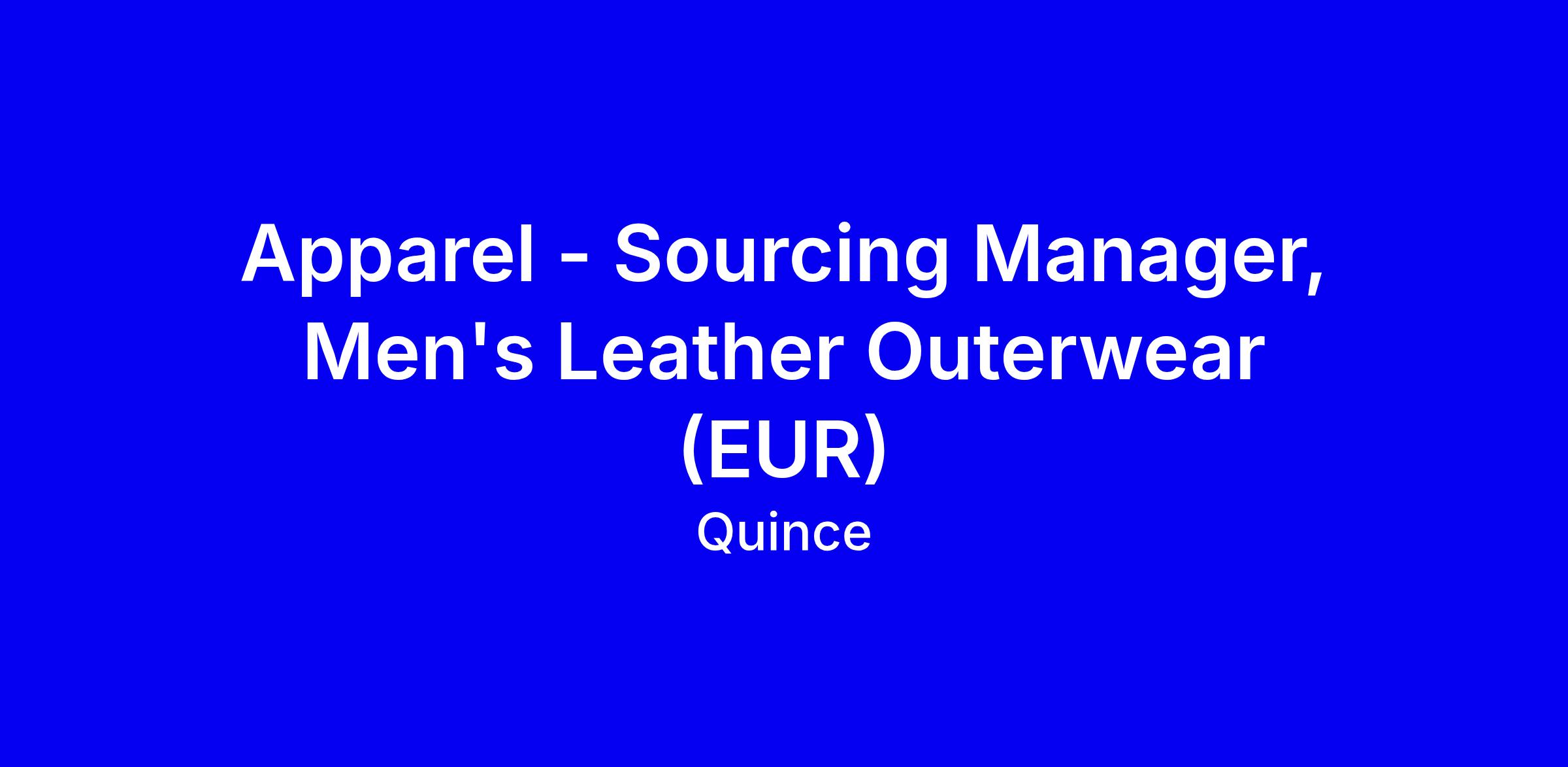 Quince is seeking a strategic Apparel Sourcing Manager for Men’s Leather Outerwear (EUR) to build and scale a high impact supplier network in the UK and Europe, with potential expansion into other categories, in a remote full time role. You will identify, onboard quickly, and manage vendor partners from scratch, drive fast test periods with clear criteria, and expand capacity while improving cost, quality and lead times. The ideal candidate has 10+ years in men’s apparel sourcing with leather outerwear, strong supplier relationships or the ability to cultivate them, and a data driven, collaborative, resilient approach. Demonstrate measurable wins in cost reductions, lead time improvements, open costing expertise, and cross functional impact. Pay ranges £100k-£135k; bonus and equity may apply. To apply, tailor your resume to show open costing, supplier scaling, and a track record of fast, scalable onboarding.