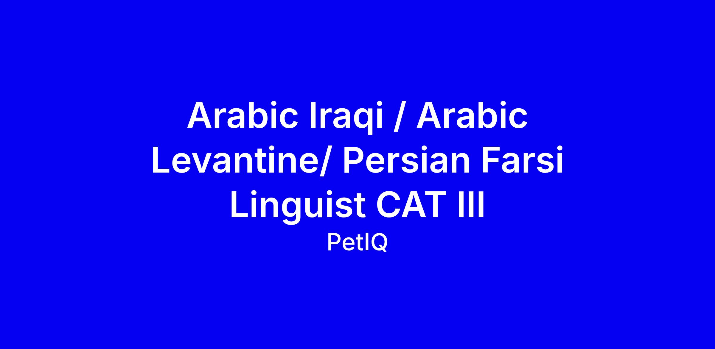 Valiant is seeking skilled CAT III Arabic Iraqi/ Arabic Levantine/ Persian Farsi Linguists to provide interpretation and translation services in support of ongoing and new U.S operations and mission requirements.