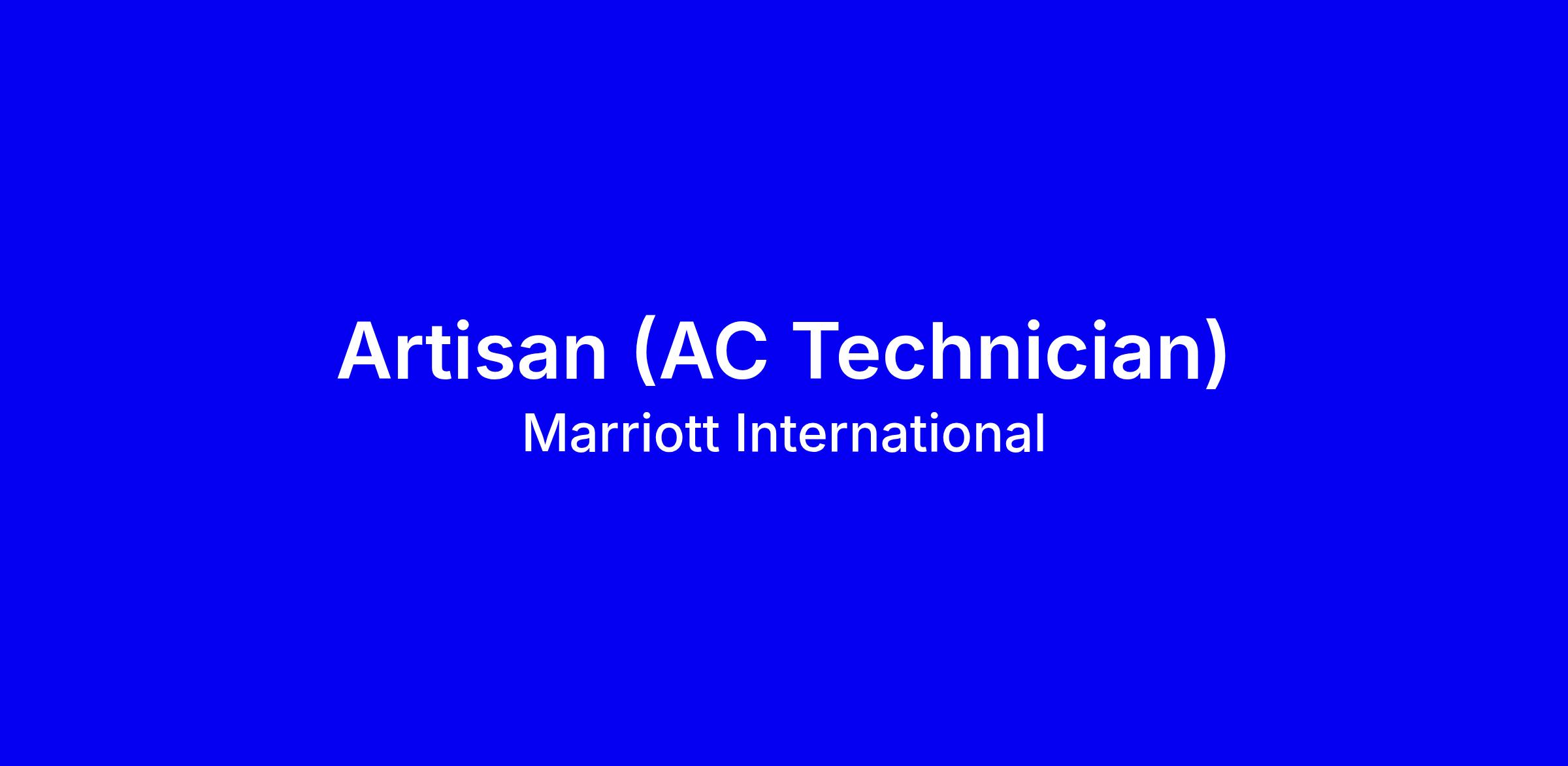 Marriott International is hiring an Artisan (AC Technician) for Al Maha, a Luxury Collection Desert Resort & Spa in Dubai. This full-time, onsite role supports guest experiences through expert maintenance of HVAC, refrigeration, electrical systems, and related equipment, with duties from preventive maintenance and fault finding to responding to guest requests and keeping maintenance logs. You’ll work in a safety-driven team, follow energy conservation initiatives, and collaborate with engineers and the shift supervisor. Marriott offers on-property accommodation, meals, career growth, medical coverage, and exclusive privileges. To apply, highlight hands-on HVAC/refrigeration, BAS and electrical skills, strong troubleshooting, safety training, and a hospitality mindset, plus shift readiness in a luxury desert setting.