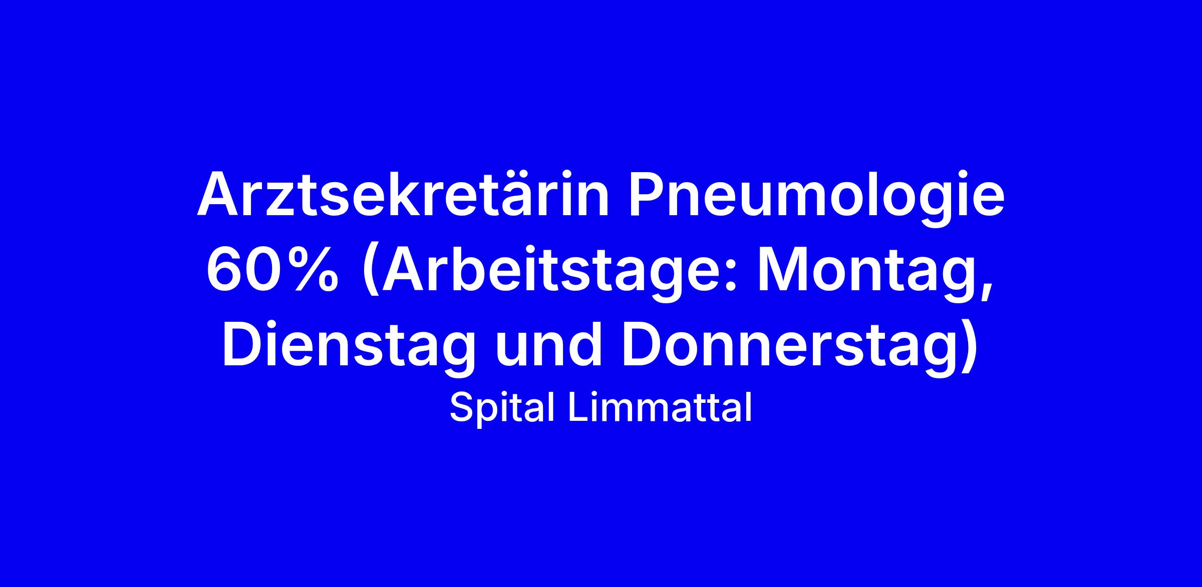 Die ausgeschriebene Stelle ist eine Arztsekretärin Pneumologie in 60% Arbeitszeit mit festen Tagen Montag, Dienstag und Donnerstag am Spital Limmattal in Schlieren. Zu Ihren Aufgaben gehören Sprechstundenorganisation, Patientenempfang und Terminvergabe, das Schreiben von Sprechstundenberichten, der elektronische Versand von Arztberichten, allgemeine administrative Sekretariatsarbeiten, der telefonische Kontakt mit Patienten sowie internen und externen Ansprechpartnern, Materialbereitstellung und Wartung von Geräten. Gesucht wird eine abgeschlossene kaufmännische Ausbildung mit Weiterbildung als Arzt- und Spitalsekretär/in, Organisationstalent, serviceorientiertes Auftreten, Freude am Umgang mit Patienten, sehr gute Deutschkenntnisse und die Fähigkeit zu selbständigem Arbeiten in interdisziplinärer Zusammenarbeit. LIMMI bietet eine familiäre Atmosphäre, moderne Arbeitsplätze und attraktive Mobilitätsvorteile. Tipps: heben Sie pneumologiebezogene Erfahrungen, Termin- und Berichtserstellung, elektronischen Versand und Patientenservice hervor, bewerben Sie sich zeitnah.