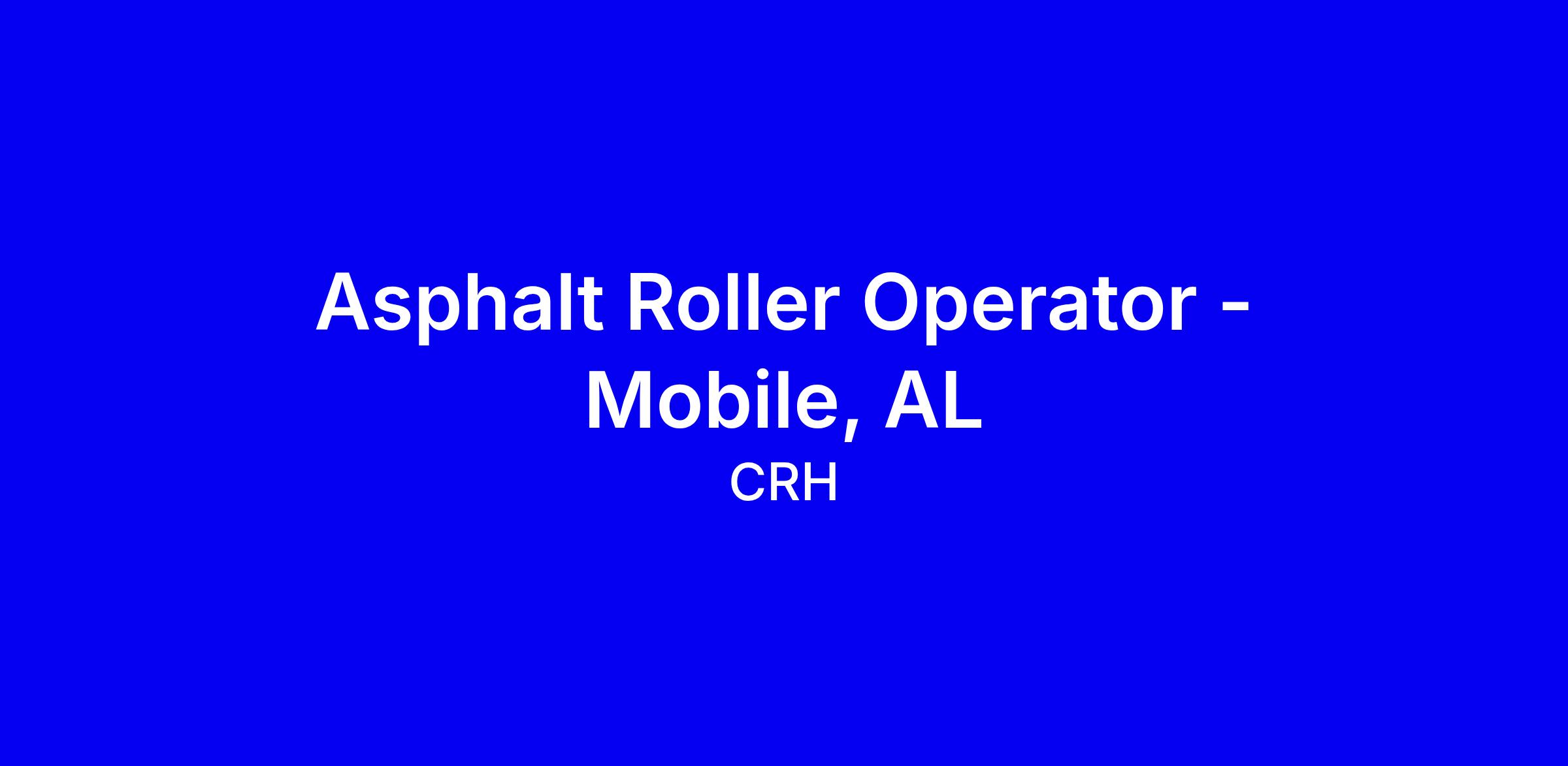 APAC-AL, Inc., part of CRH’s South Central Division, is seeking an Asphalt Roller Operator in Mobile, AL to safely and efficiently operate asphalt rollers and compactors to bring asphalt, soils and aggregate within compaction specifications on heavy highway projects. Requirements emphasize prior experience operating an asphalt roller on road construction, safe and efficient equipment operation, knowledge of asphalt and aggregate characteristics and rolling patterns, familiarity with vibrating frequencies relative to maximum depth, ability to follow grades, basic math and tape measure reading, lifting up to 30 pounds repeatedly, and maintaining reliable attendance with a positive attitude. APAC-AL is an Affirmative Action and Equal Opportunity Employer and an E-Verify Participant. To apply, complete the online profile so your materials go to the hiring manager and you can track status 24/7; tailor your resume to highlight safety, reliability, and your hands-on equipment knowledge.