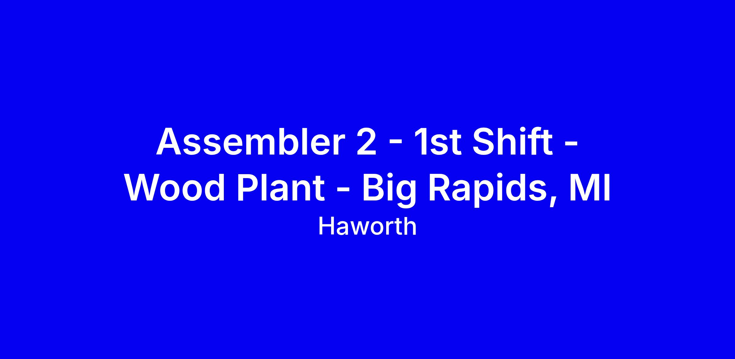 Haworth is seeking an Assembler 2 for the first shift at the Big Rapids wood plant. This full-time role assembles final products, uses hand and power tools, inspects parts, may sub-assemble, packages for shipment, and records data while rotating through departments. Benefits from day one include medical, dental, vision, life, a 401K with match, PTO, bonuses, tuition reimbursement, and parental leave. Requirements are modest: 8th grade education and about one year of manufacturing experience is helpful; physical demands include lifting up to 50 pounds and standing. Tip select the shift you are available for, as applicants are considered only for that shift. Highlight safety, quality checks, and proficiency with basic tools and production software, and show willingness to rotate and work overtime.