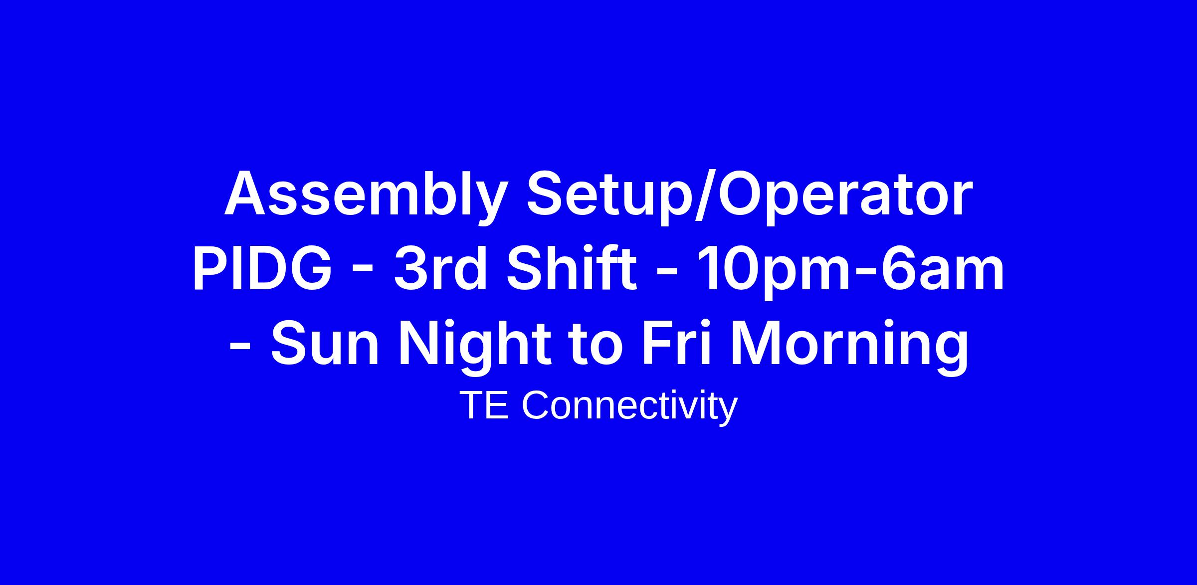 TE Connectivity is seeking an Assembly Setup/Operator PIDG for the 3rd shift in Landisville, PA to set up machines, perform repairs, and run RBY production. Requires a high school diploma or GED, machine set-up experience, and band saw and drill press skills; inspection with micrometers and calipers; SAP a plus and RBY knowledge preferred. Shift is Sunday through Thursday, 10 pm to 6 am, with 2nd shift training during the first months. ITAR/EAR eligibility applies. Pay is $23-$24/hr plus 3rd shift differential with benefits. Apply through TE Careers, tailor your resume to highlight setup, tooling, inspection, and safety, and ensure U.S. work eligibility; watch for TE emails ending in @te.com.