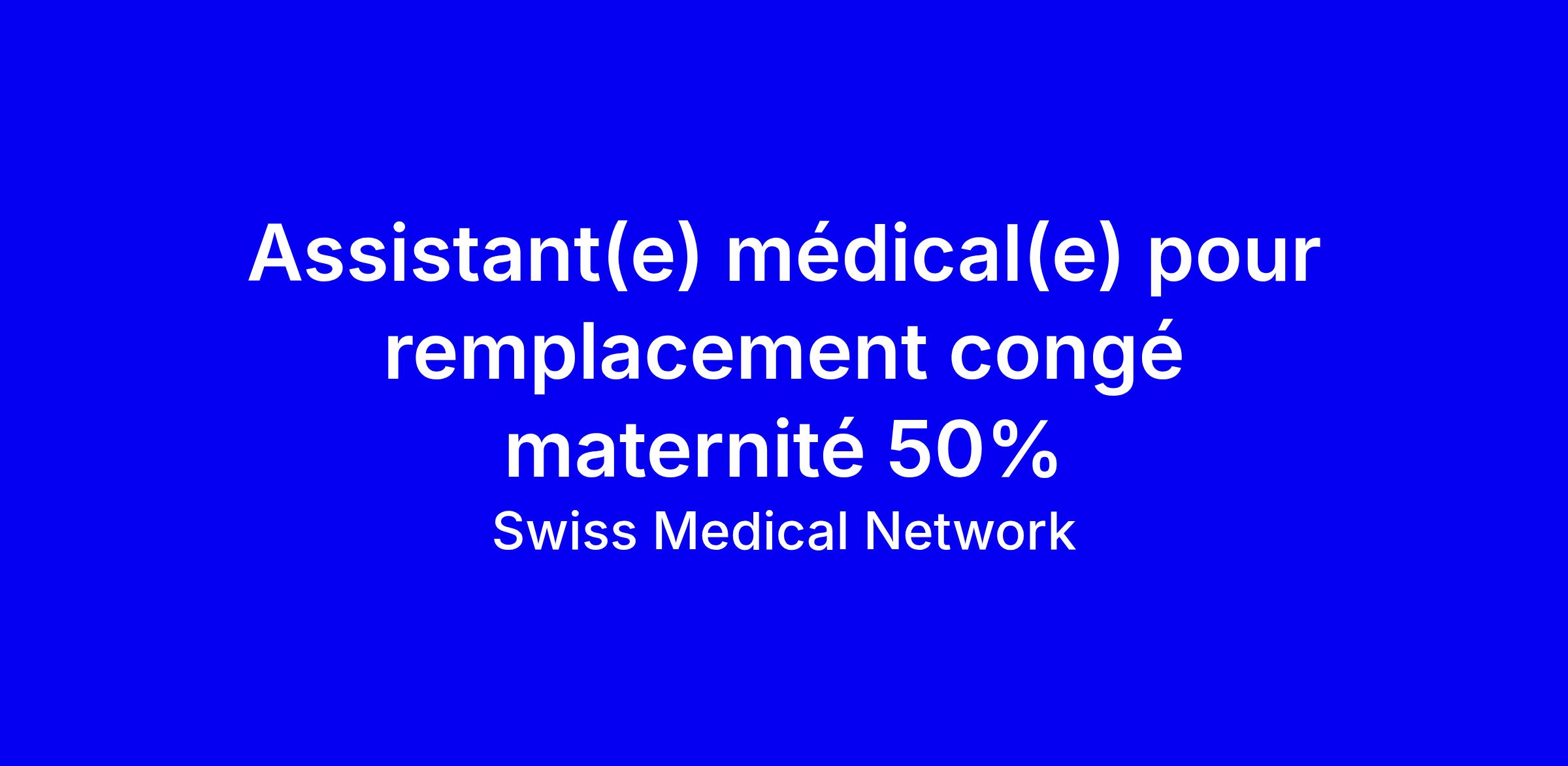 Dans le cadre d'un remplacement de congé maternité d'une durée de 6 mois minimum, nous recrutons un(e) Assistant(e) médical(e) à un taux de 50%.