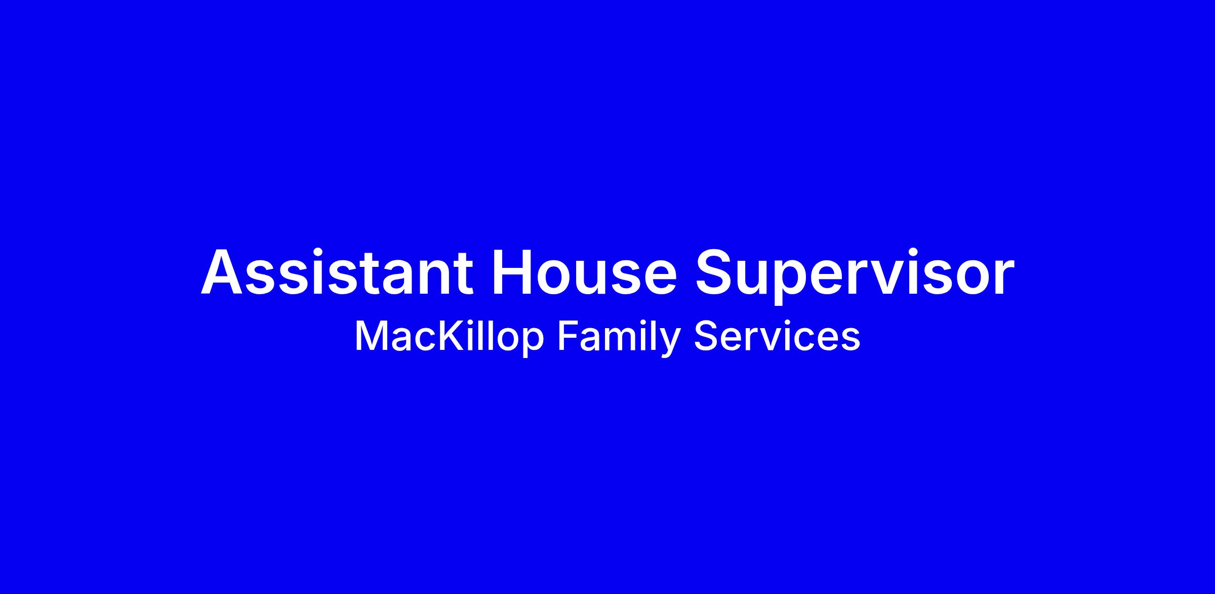 The Assistant House Supervisor is responsible to oversee the daily care of young people provided by residential care workers within their allocated residential care home during times when the House Supervisor is not rostered to work, or is not present in the home. The Assistant House Supervisor is a part of the Out of Home Care Program and reports to the House Supervisor, or Residential Care Coordinator in the absence of the House Supervisor.
