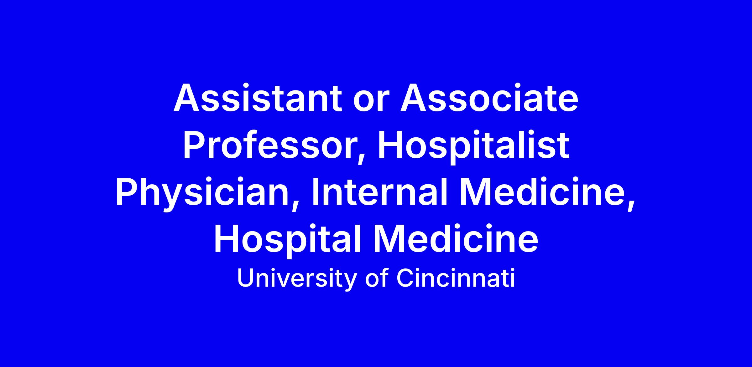 The Division of Hospital Medicine at the University of Cincinnati College of Medicine, Cincinnati, Ohio, is seeking two (2) Internal Medicine physicians at either the Assistant or Associate Professor level (title commensurate with credentials) for our inpatient services at UC Medical Center with teaching activities in the Department’s Graduate Medical Education program.